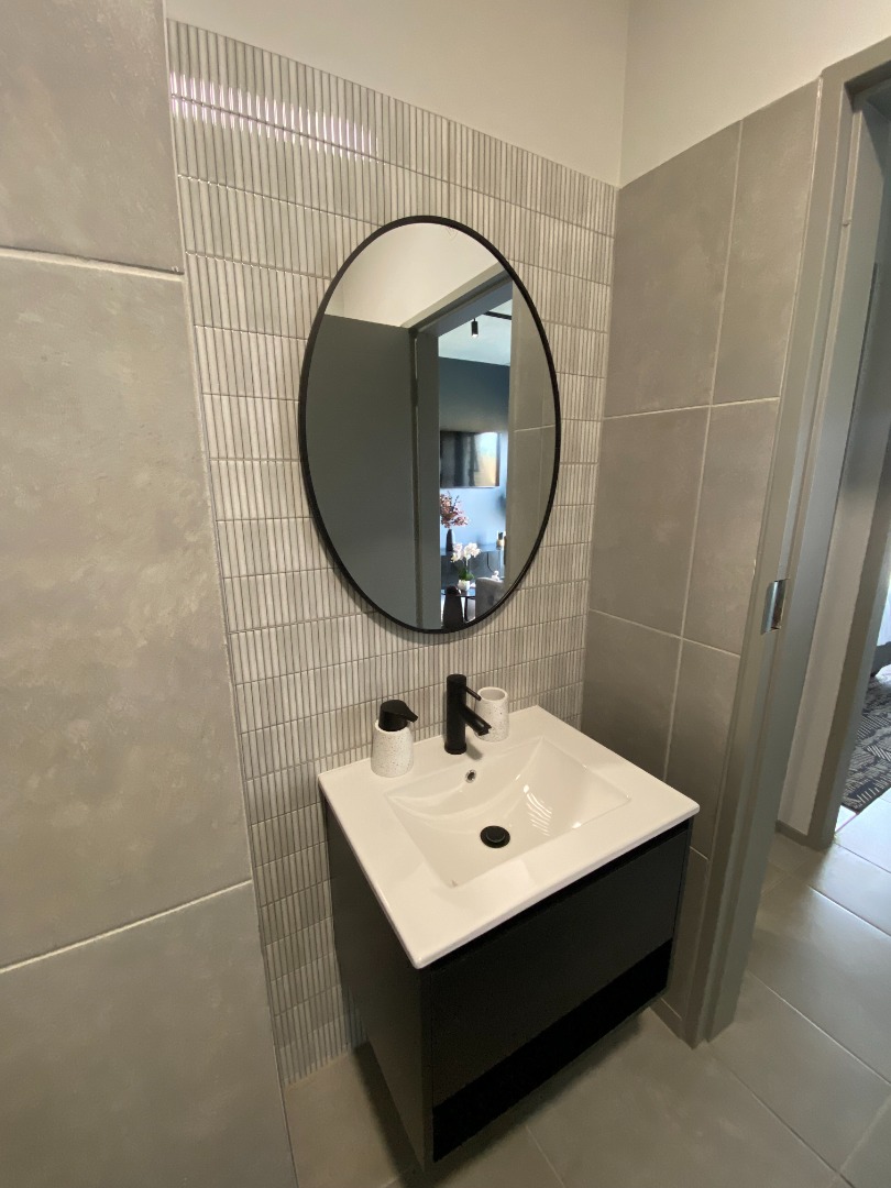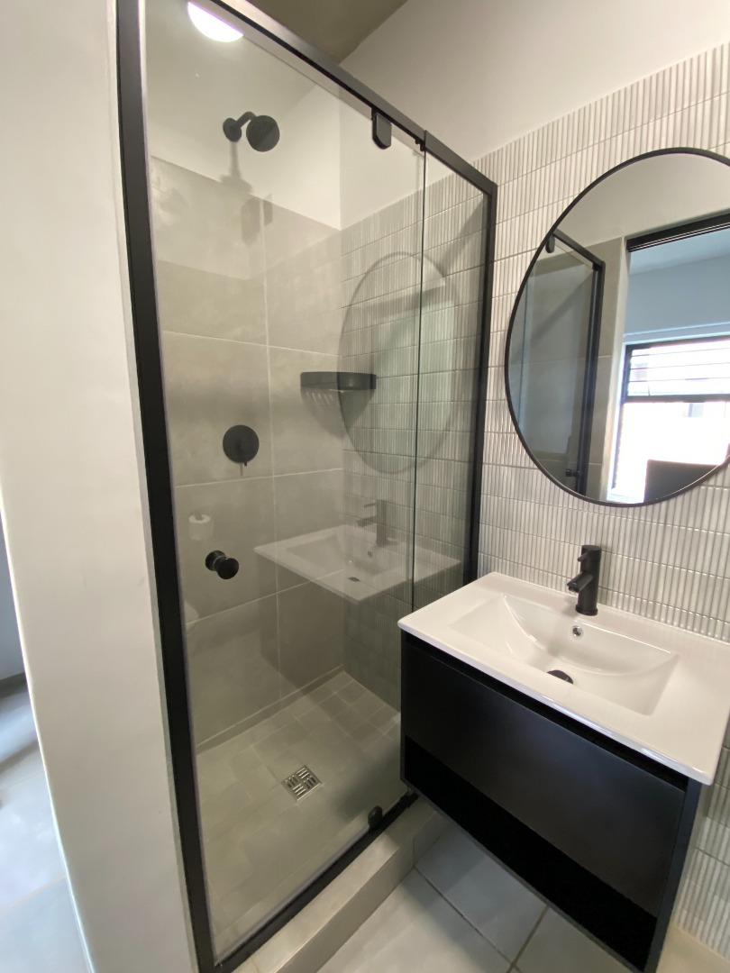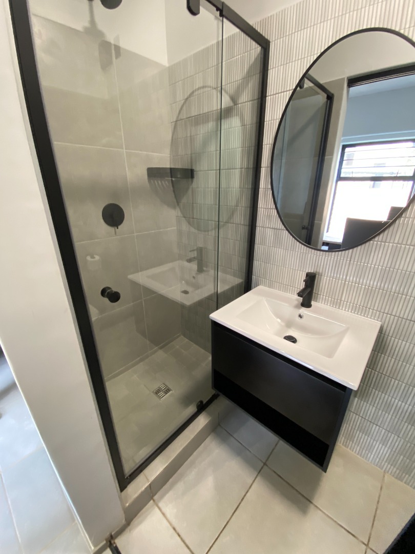 The main bedroom boasts built-in cupboards, modern finishes, and a private en-suite bathroom fitted with a shower, basin, and toilet.