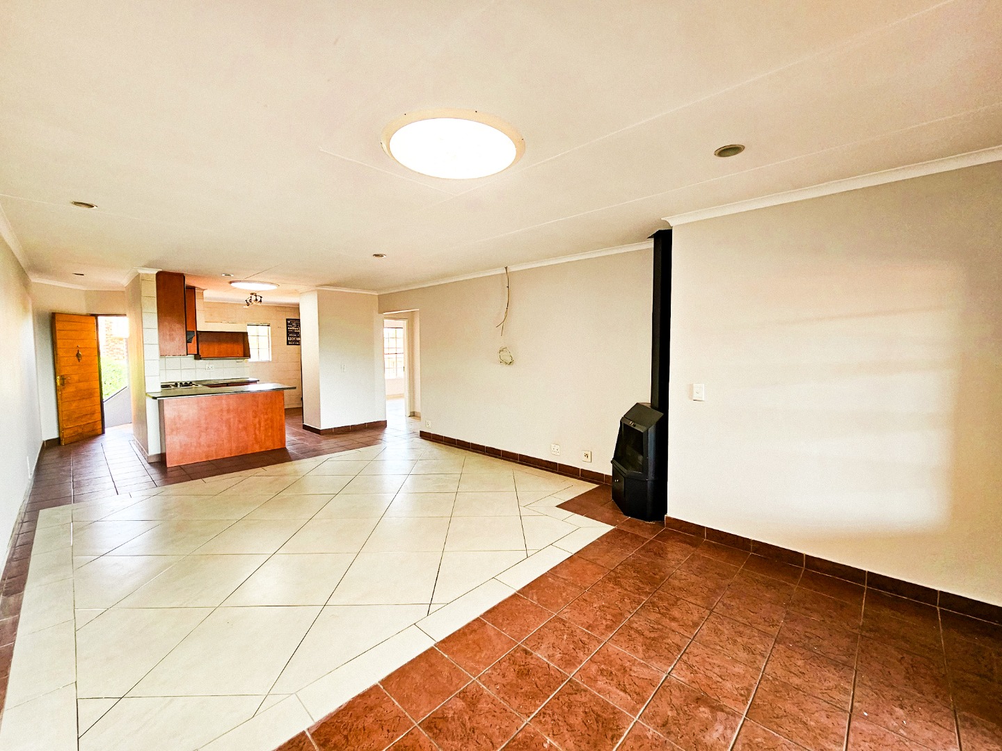 The interior boasts a spacious lounge, providing a welcoming area for relaxation. The open-plan kitchen is thoughtfully designed with abundant cupboard space, room for a double-door fridge, and provisions for essential appliances, catering to all your culinary needs. Adjacent to the kitchen is a dedicated dining area, perfect for enjoying meals with family and friends.