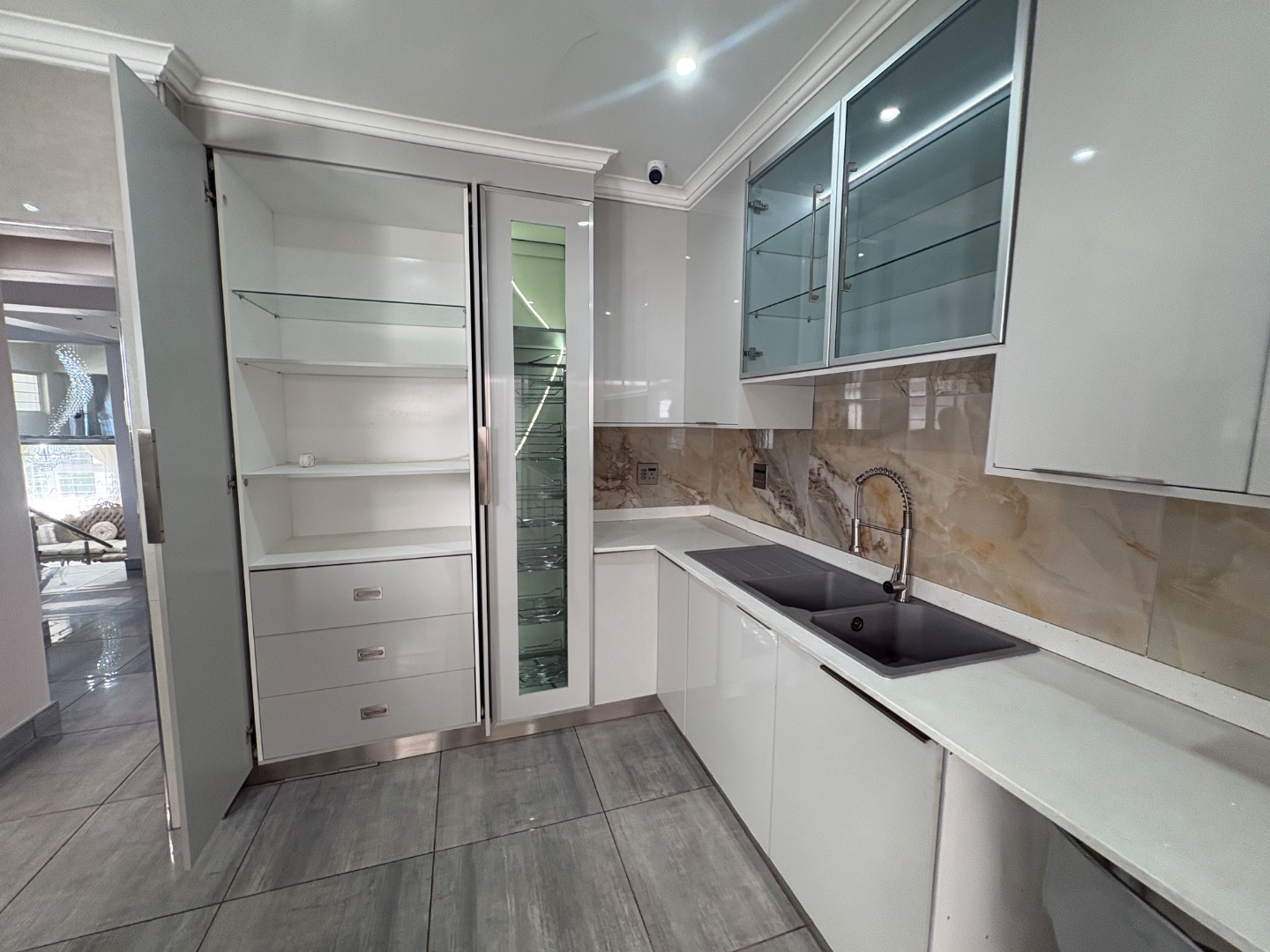 The living areas are all located on split level a spacious lounge and a modern, open plan kitchen. The kitchen offers exquisite modern finishes with granite counter tops, gas hob with a separate scullery making this an exceptional home.