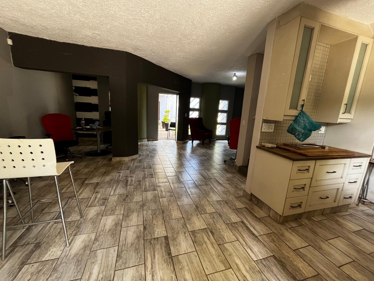 Looking for a flexible commercial spot in Erasmuskloof, Pretoria? This property offers a fantastic corner location with excellent visibility and easy access. You'll appreciate the secure, gated entrance and paved driveway, making it super convenient for clients and staff. Inside, the layout is quite versatile, featuring modern wood-look tiled flooring throughout. You'll find various adaptable spaces, including an open-plan area with a basic kitchenette and a separate bathroom. There's plenty of natural light too, creating a pleasant working environment. While some areas might need a personal touch, this space is ready for you to make it your own.