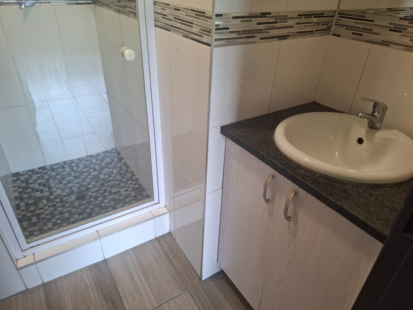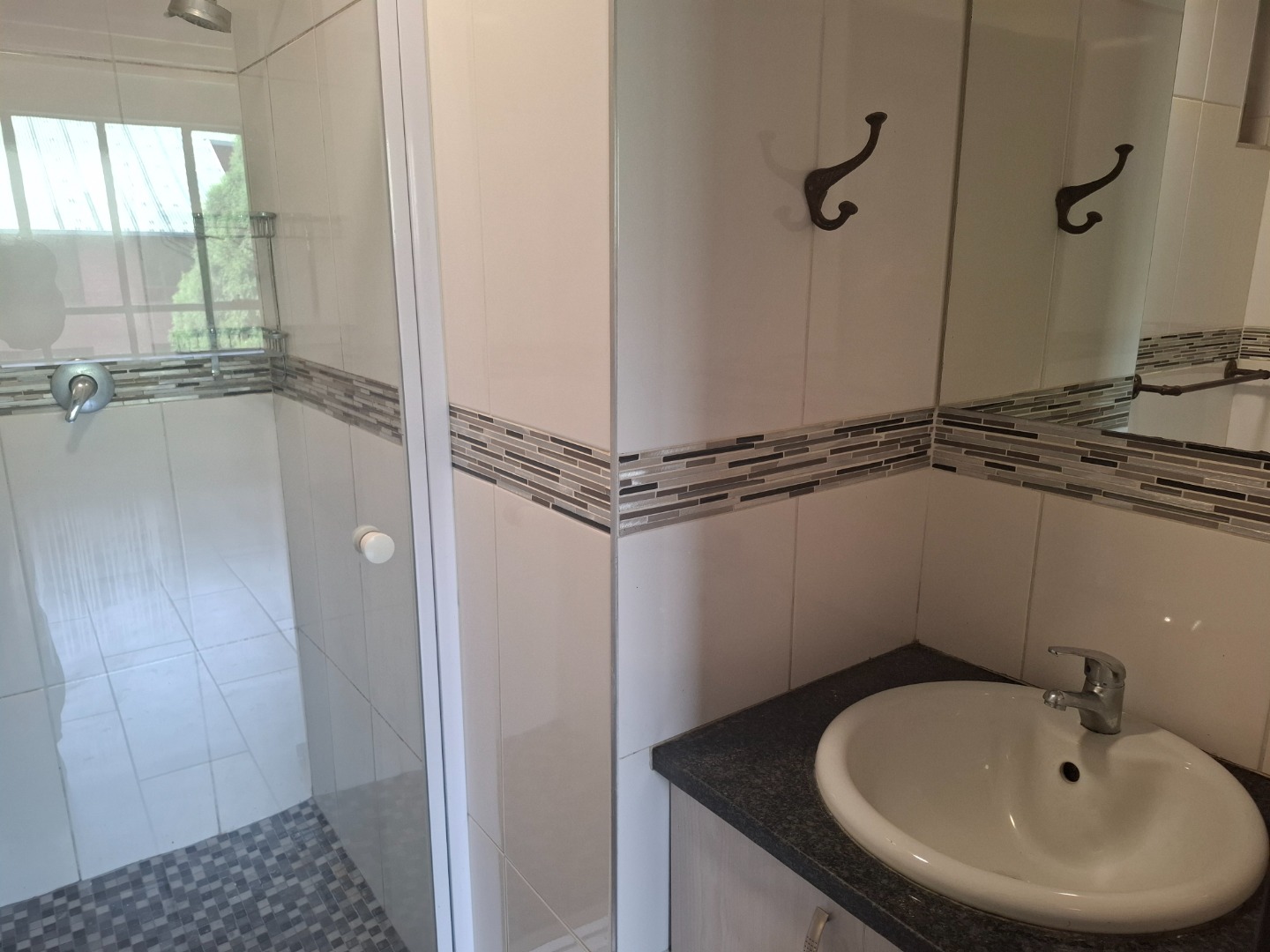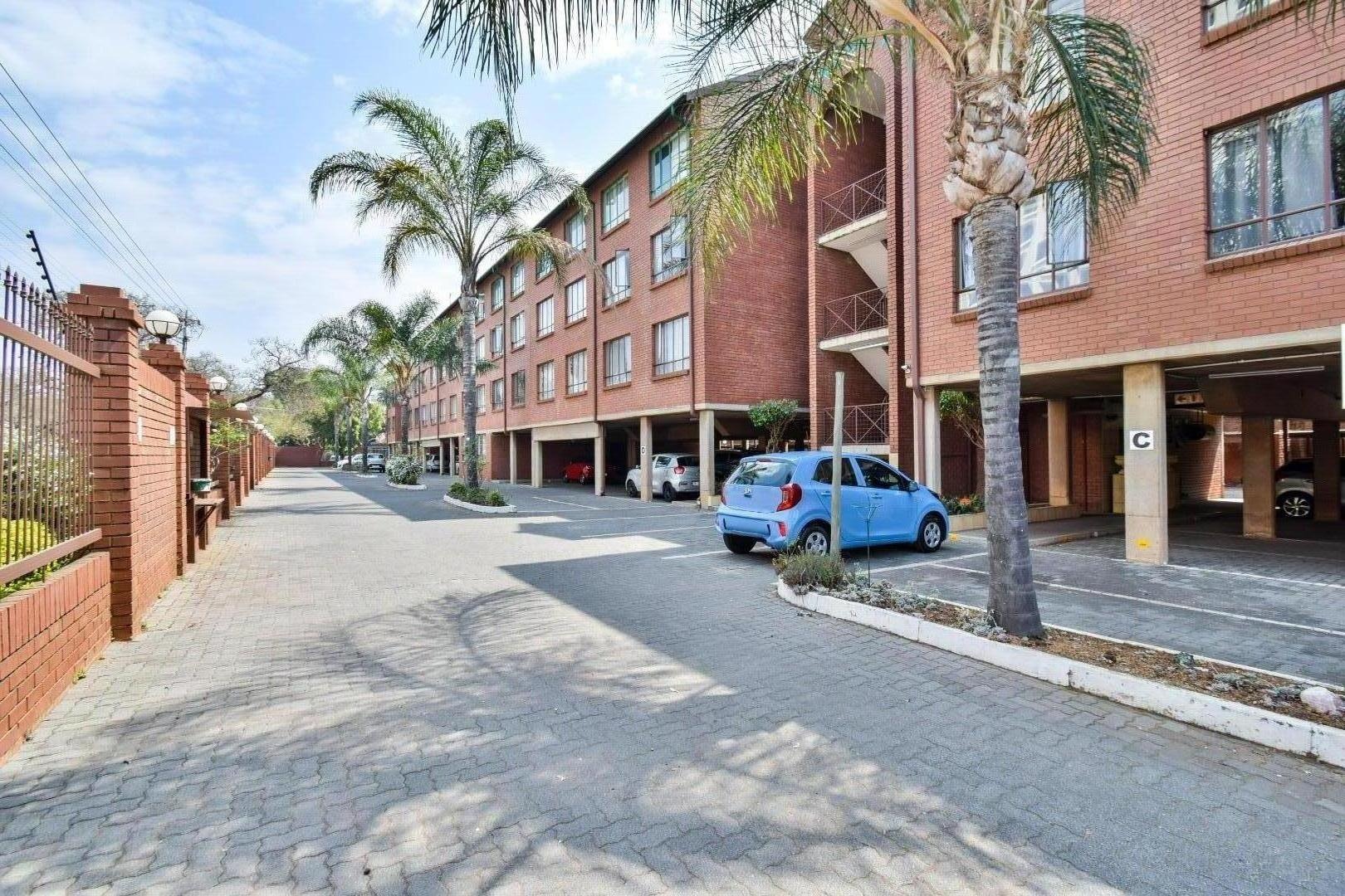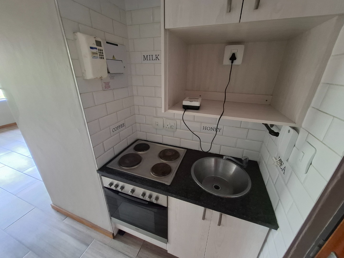 It features a kitchenette with a built in oven and a four plate stove. The open plan layout includes a contemporary staircase leading to a versatile loft area, complete with a ceiling fan and built-in wardrobes. A single bathroom with a shower serves the unit. This property includes one parking bay, 24-hour security and perimeter electric fencing. This bustling hub is known for its proximity to educational institutions and convenient amenities.