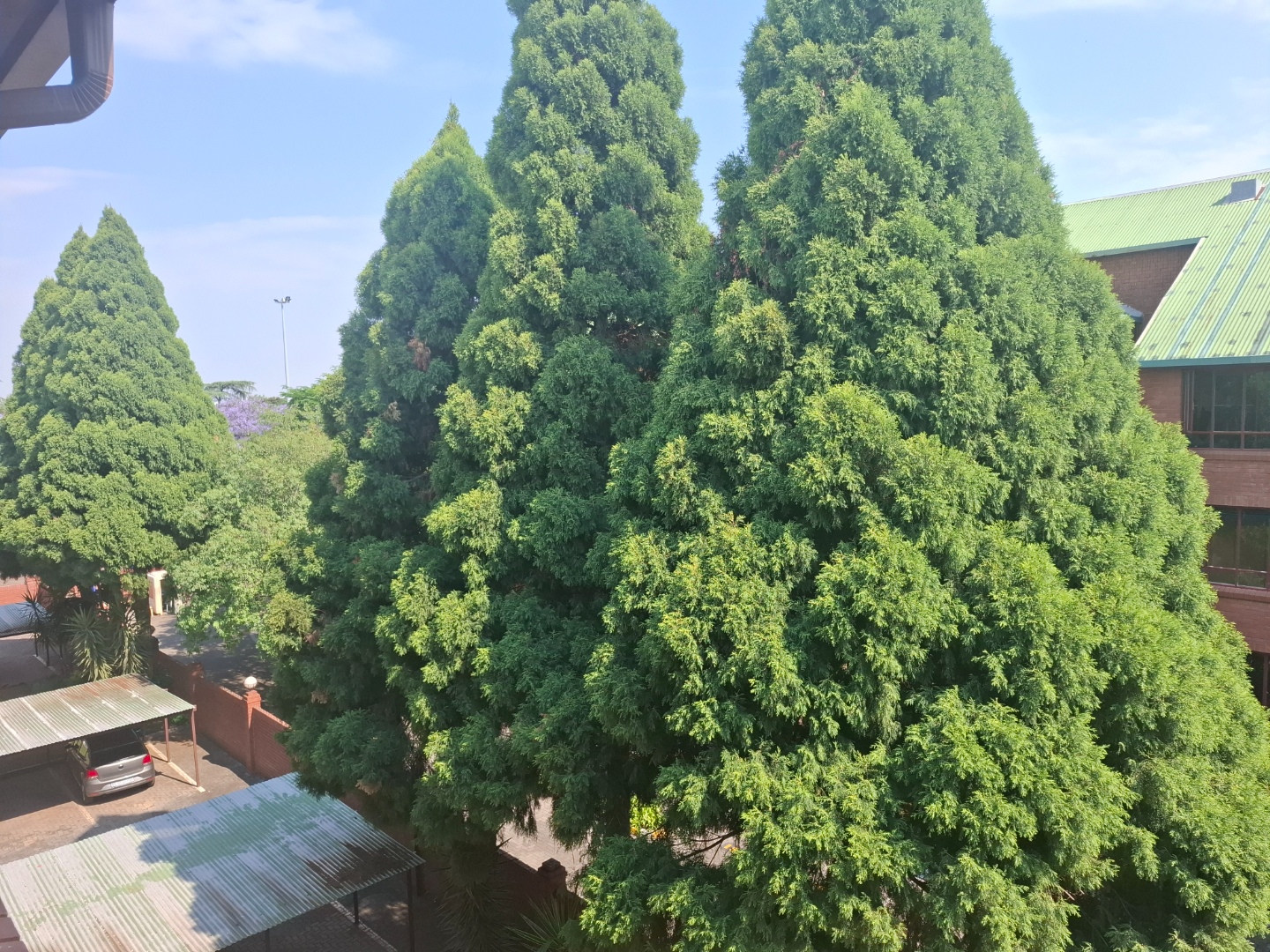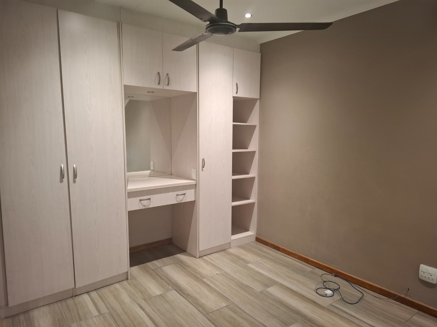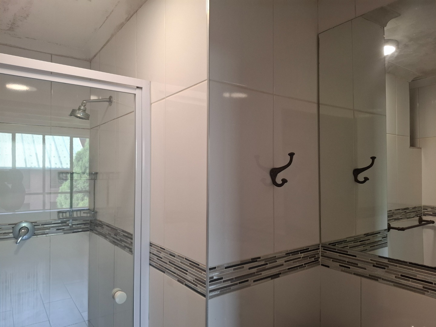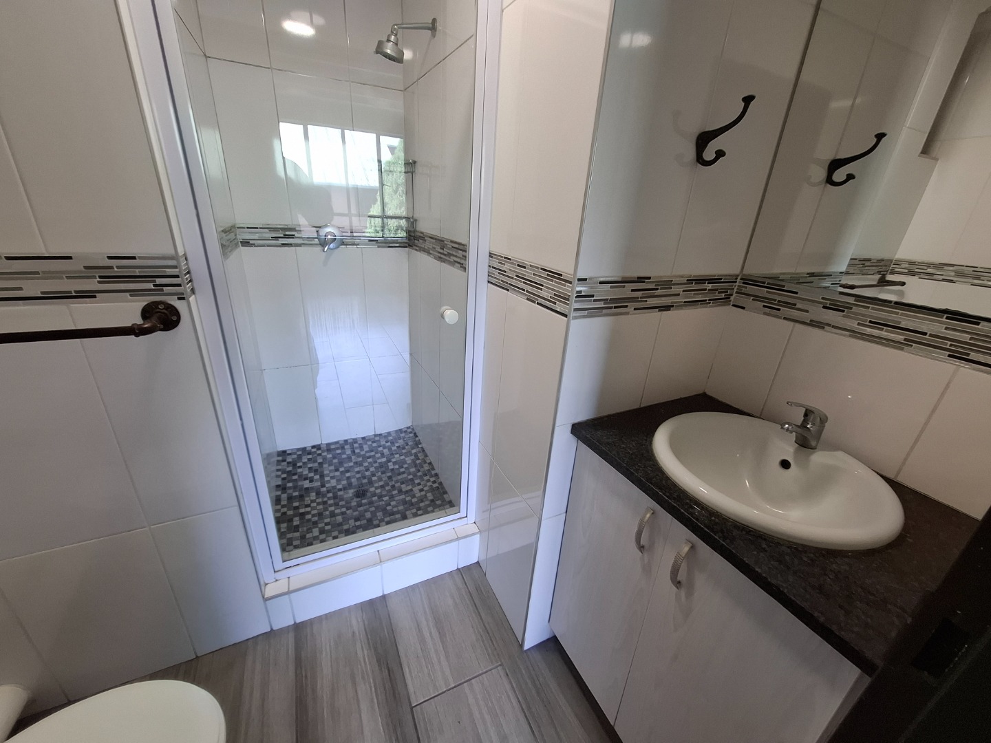 It features a kitchenette with a built in oven and a four plate stove. The open plan layout includes a contemporary staircase leading to a versatile loft area, complete with a ceiling fan and built-in wardrobes. A single bathroom with a shower serves the unit. This property includes one parking bay, 24-hour security and perimeter electric fencing. This bustling hub is known for its proximity to educational institutions and convenient amenities.
