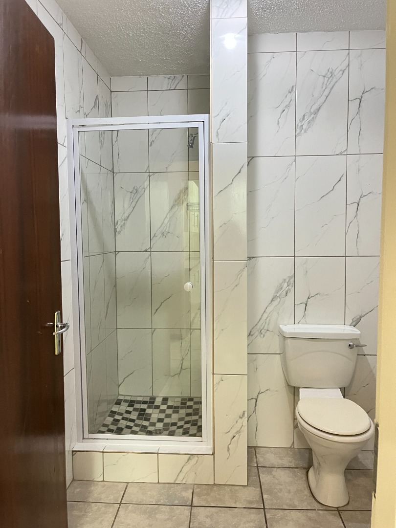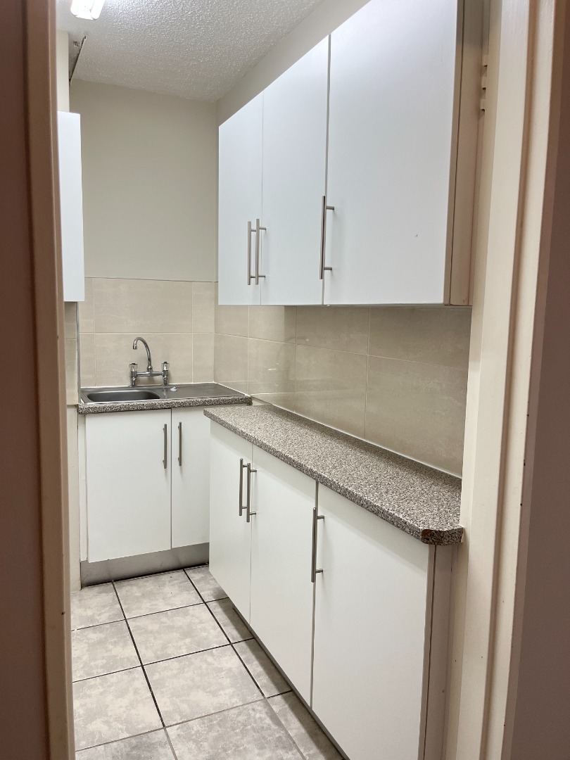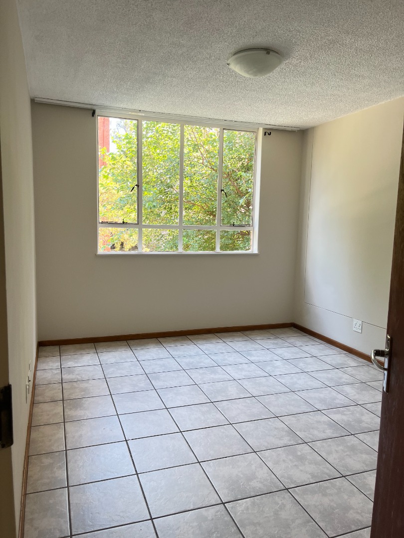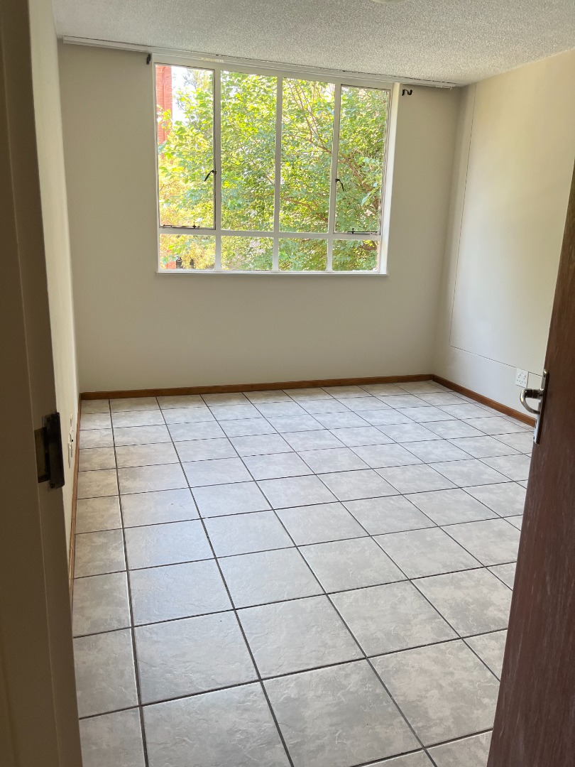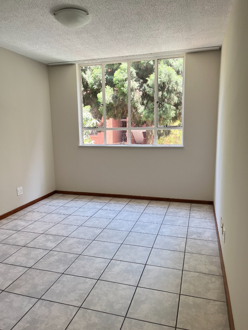 Discover this 2 bedroom, 1 bathroom apartment located in a secure complex in Hatfield, Pretoria. The unit features durable tiled flooring throughout and receives abundant natural light from large windows. The compact kitchen is equipped with modern white cabinets, a Hisense refrigerator, and essential tabletop appliances.
