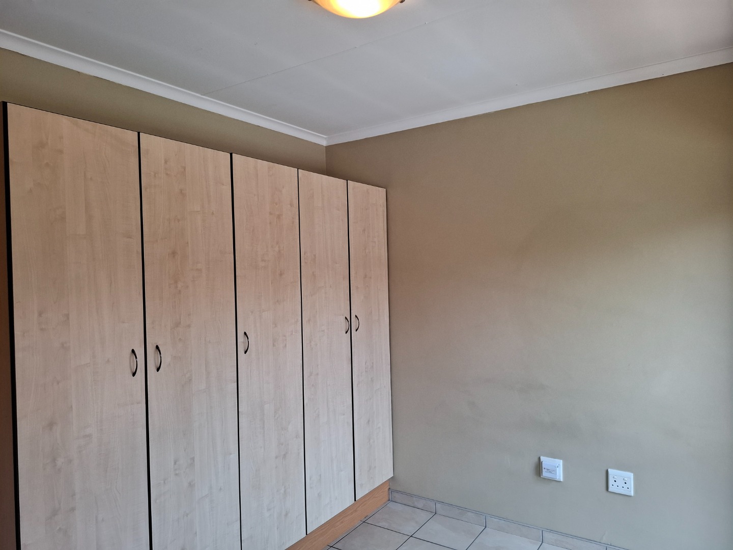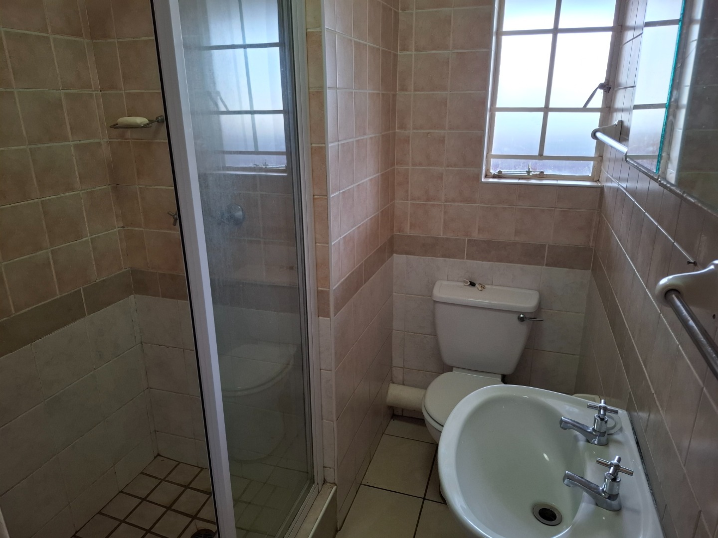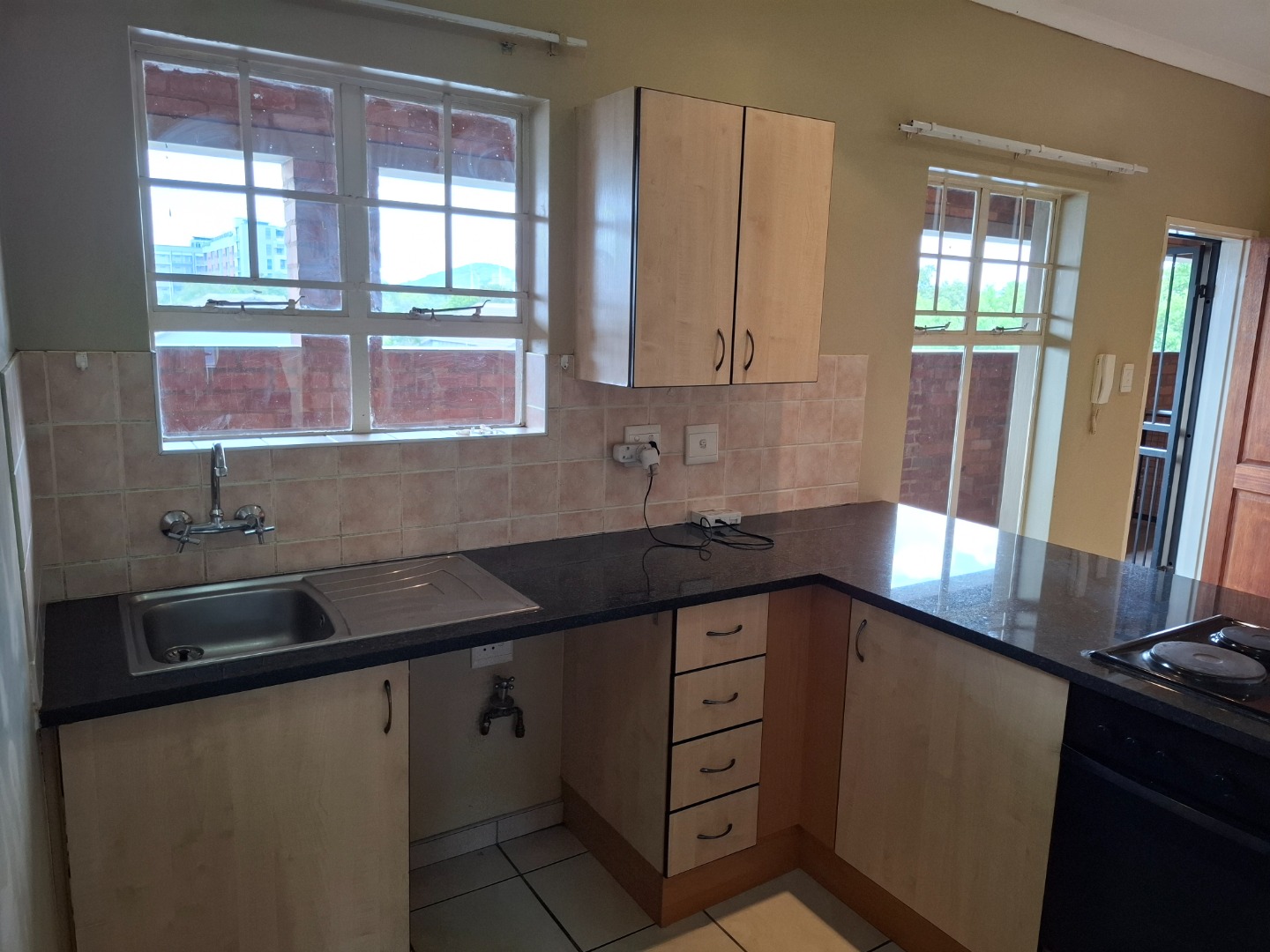 Both bedrooms have built-in cupboards. The bathroom has a fitted shower and toilet. The open plan kitchen has sufficient cupboard space and a washing machine connection point.