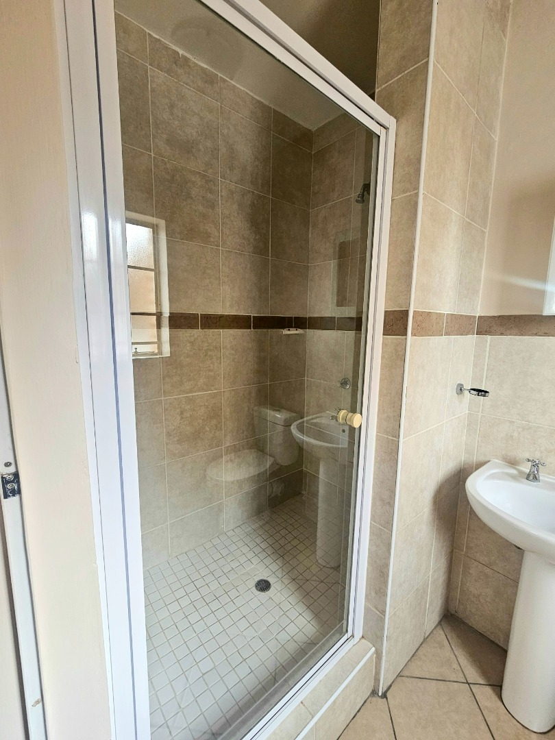 Designed for a contemporary lifestyle, this unfurnished home is pet-friendly. The living area extends to a private patio with a built-in braai, perfect for outdoor entertaining, overlooking a manageable garden space. Residents also benefit from access to a communal swimming pool, enhancing leisure options. This property is ideal for families or professionals seeking a secure and convenient lock-up-and-go residence.
