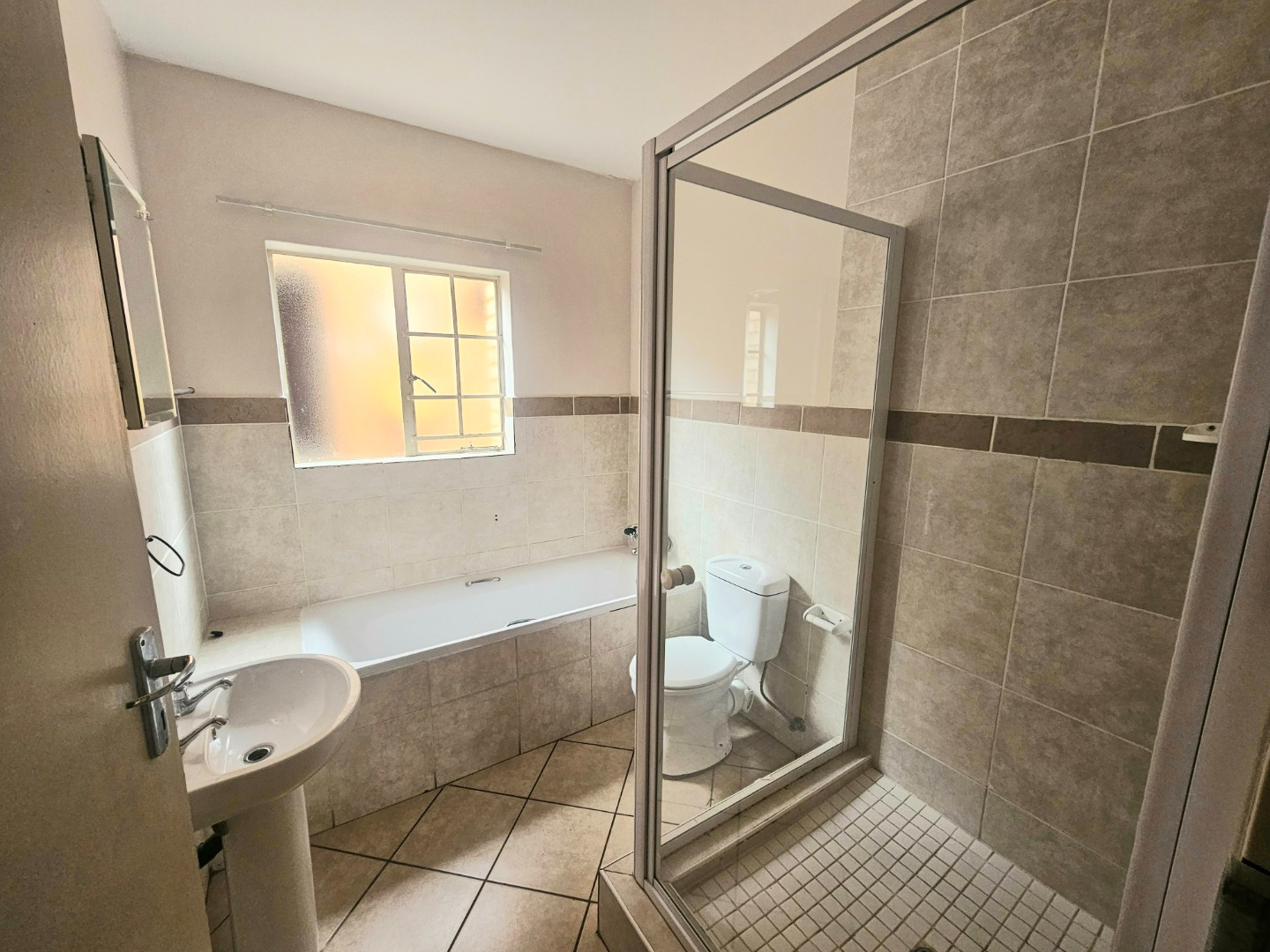 Security is a priority within this complex, featuring 24-hour security, a security post, and an access gate. The property itself includes security gates on external doors and windows, providing peace of mind. For connectivity, the unit is fibre-ready, ensuring high-speed internet access.