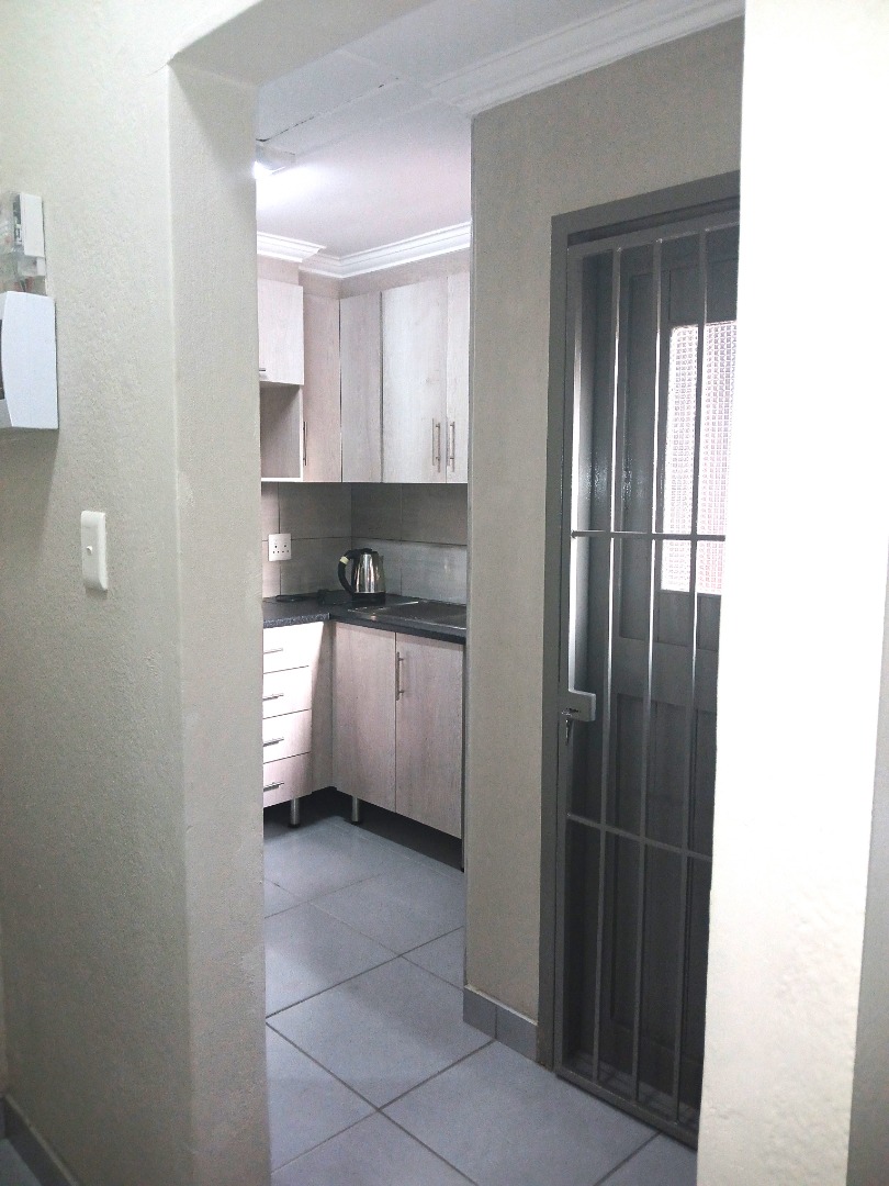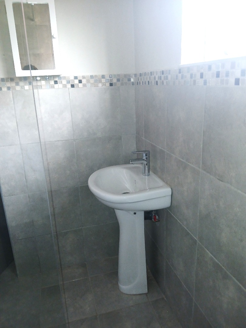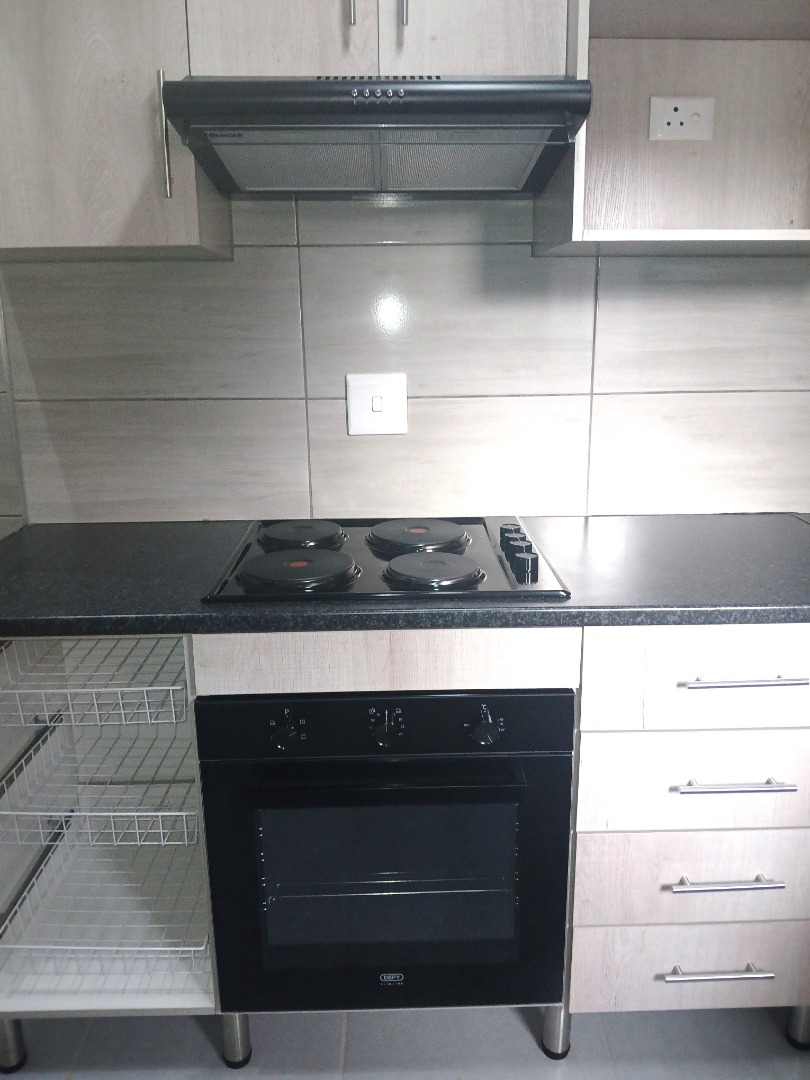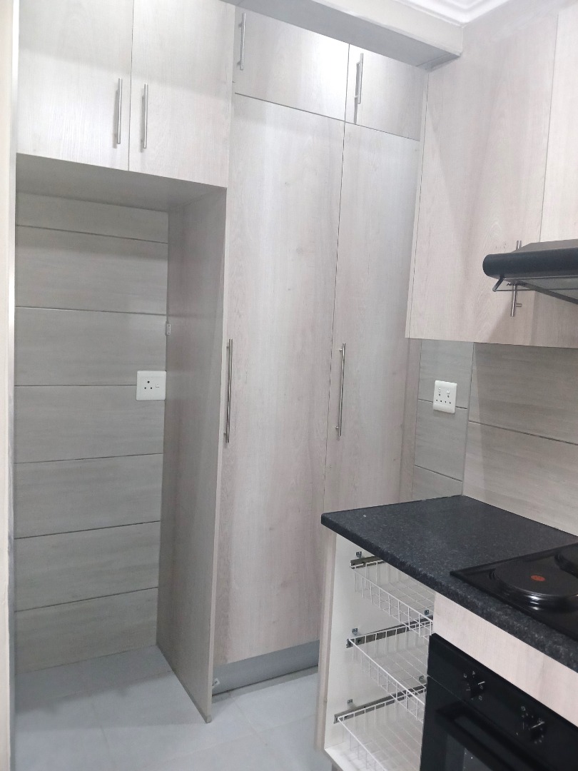 The modern kitchen have ample cupboards, granite tops, washing machine fitting and built-in space for a single door fridge;