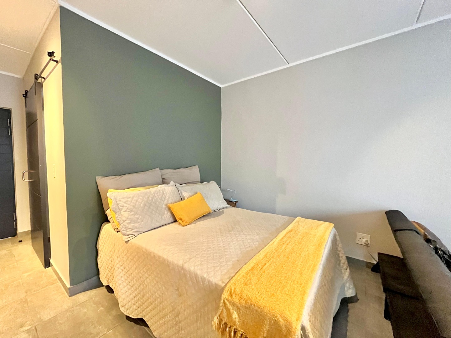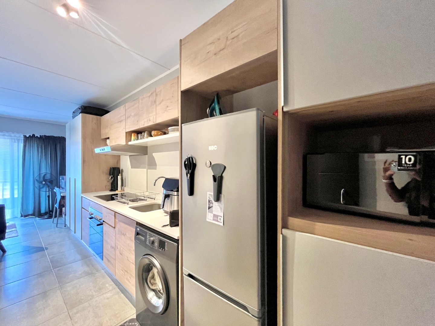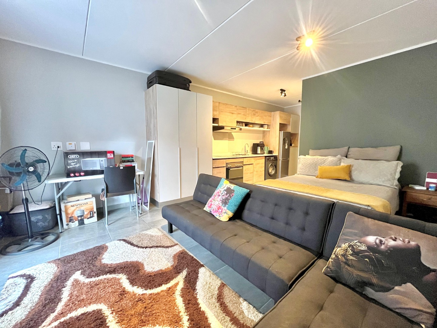 Discover modern living in this compact 36sqm studio apartment located in Menlo Park. This open-plan unit features a contemporary kitchen equipped with an integrated hob, oven, and washing machine, complemented by stylish two-tone cabinetry. The living and sleeping area boasts an accent wall and tiled flooring throughout. Enjoy a sleek bathroom with a walk-in shower and a private balcony for outdoor relaxation. Ideal for a single professional or student, this lock-up-and-go unit offers convenience. Situated within a secure gated community with an access gate and security post, it includes one parking bay and access to a communal braai area. Fibre-ready for seamless connectivity.