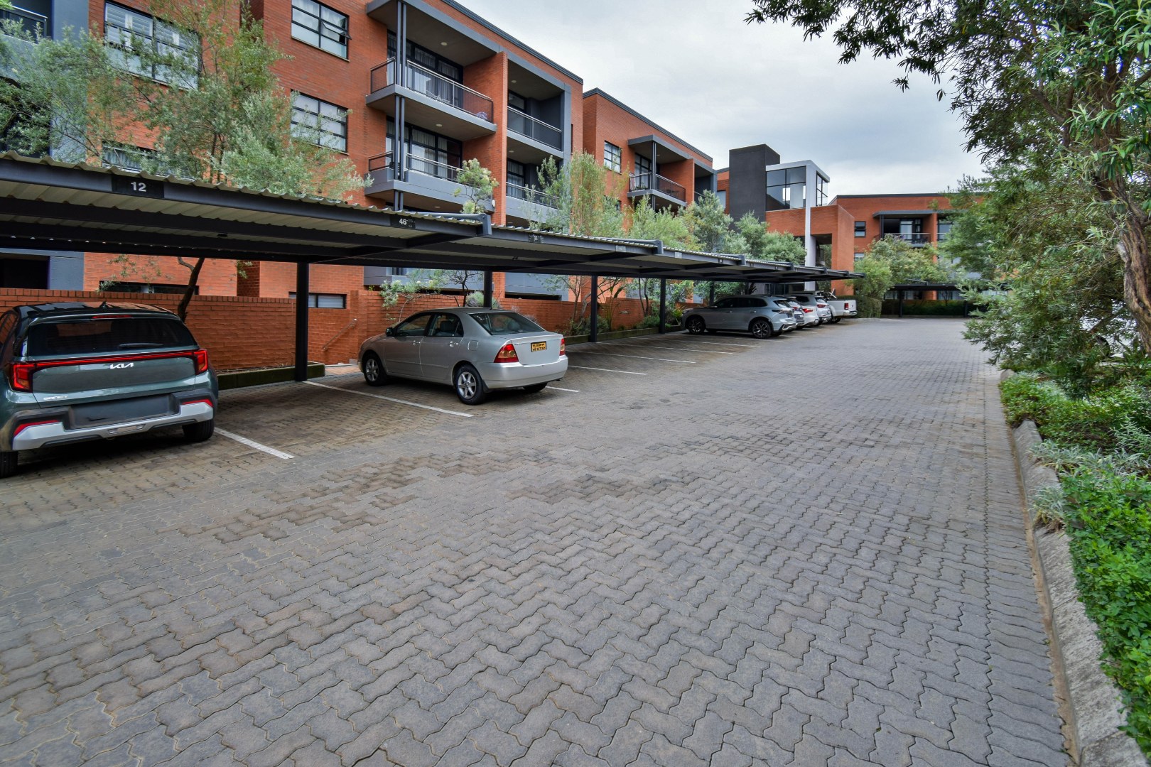 The apartment features spacious bedrooms, contemporary finishes, and two secure undercover parking bays. The complex is surrounded by lush garden flowers and includes a play area, creating a peaceful and family-friendly environment.