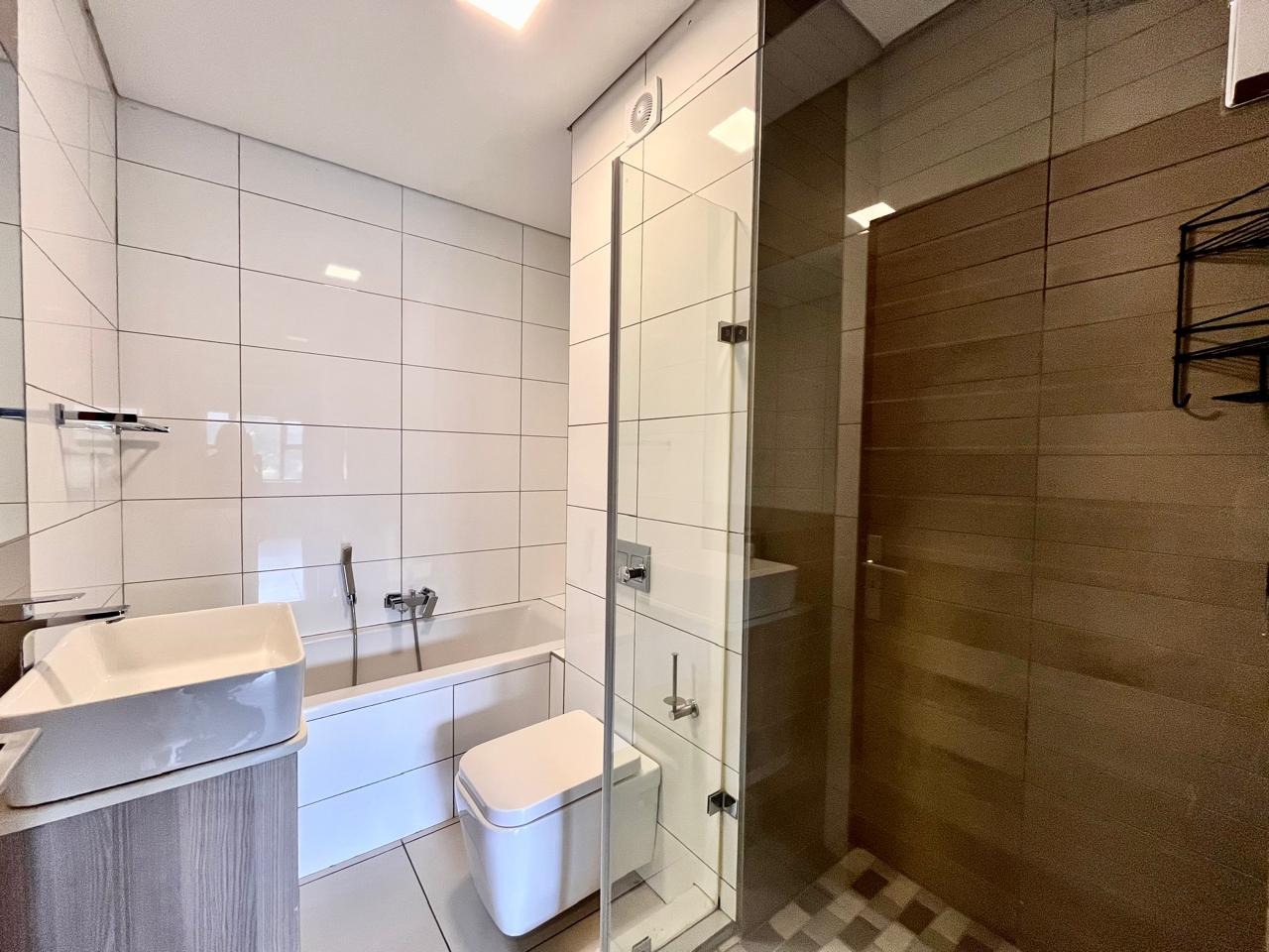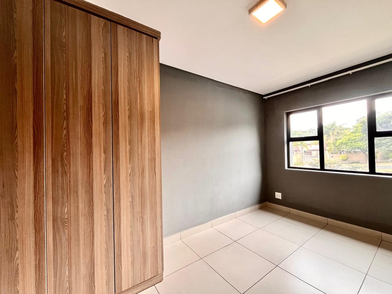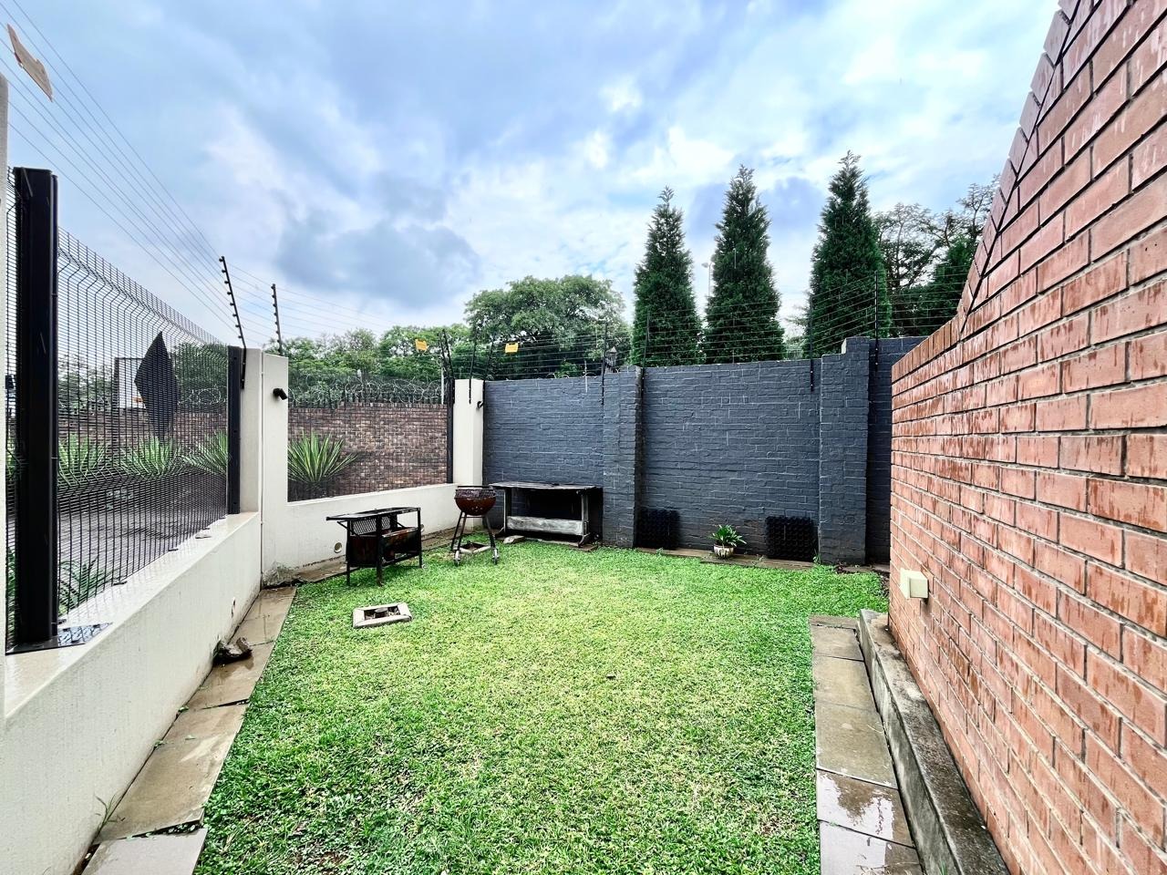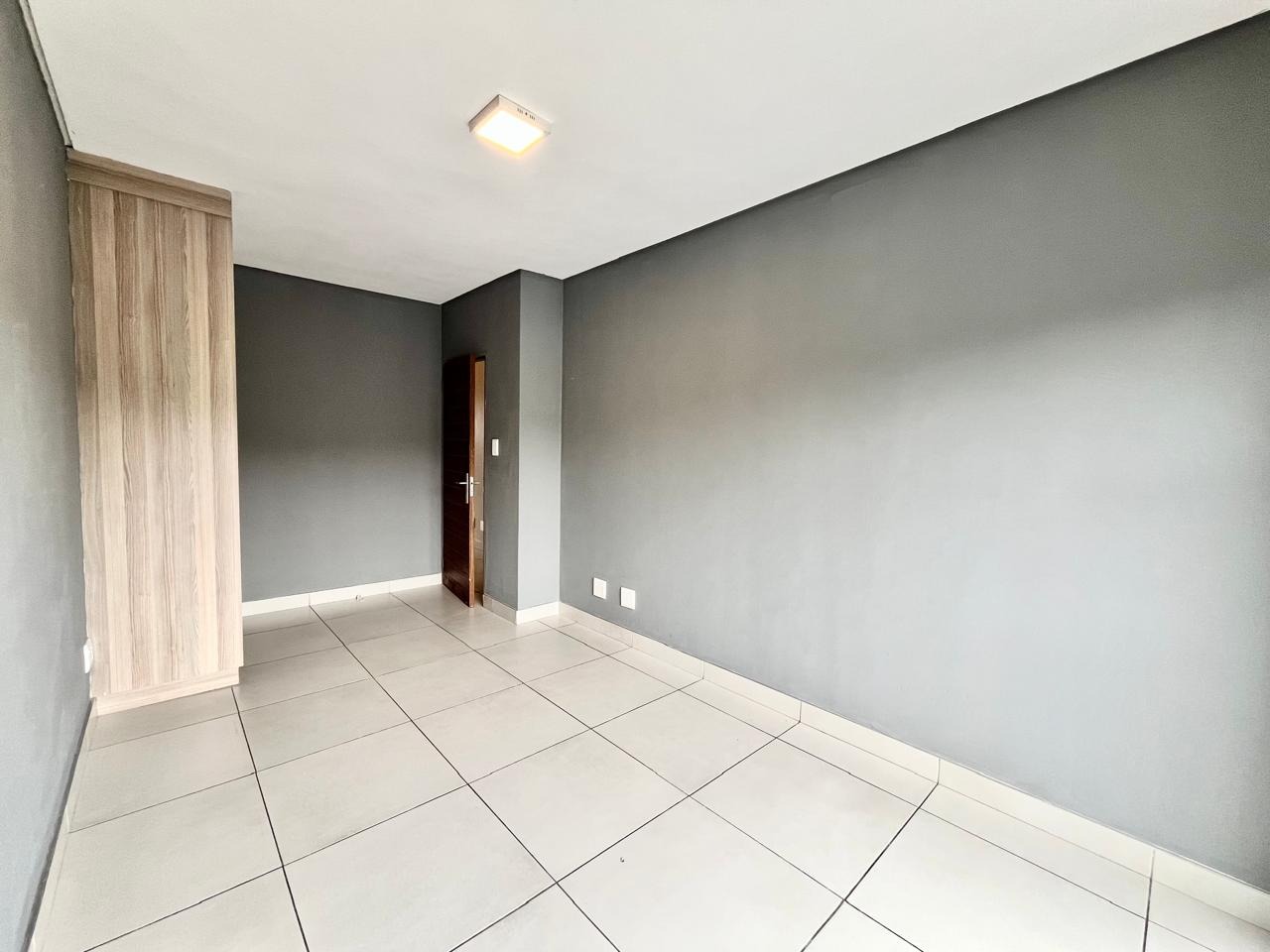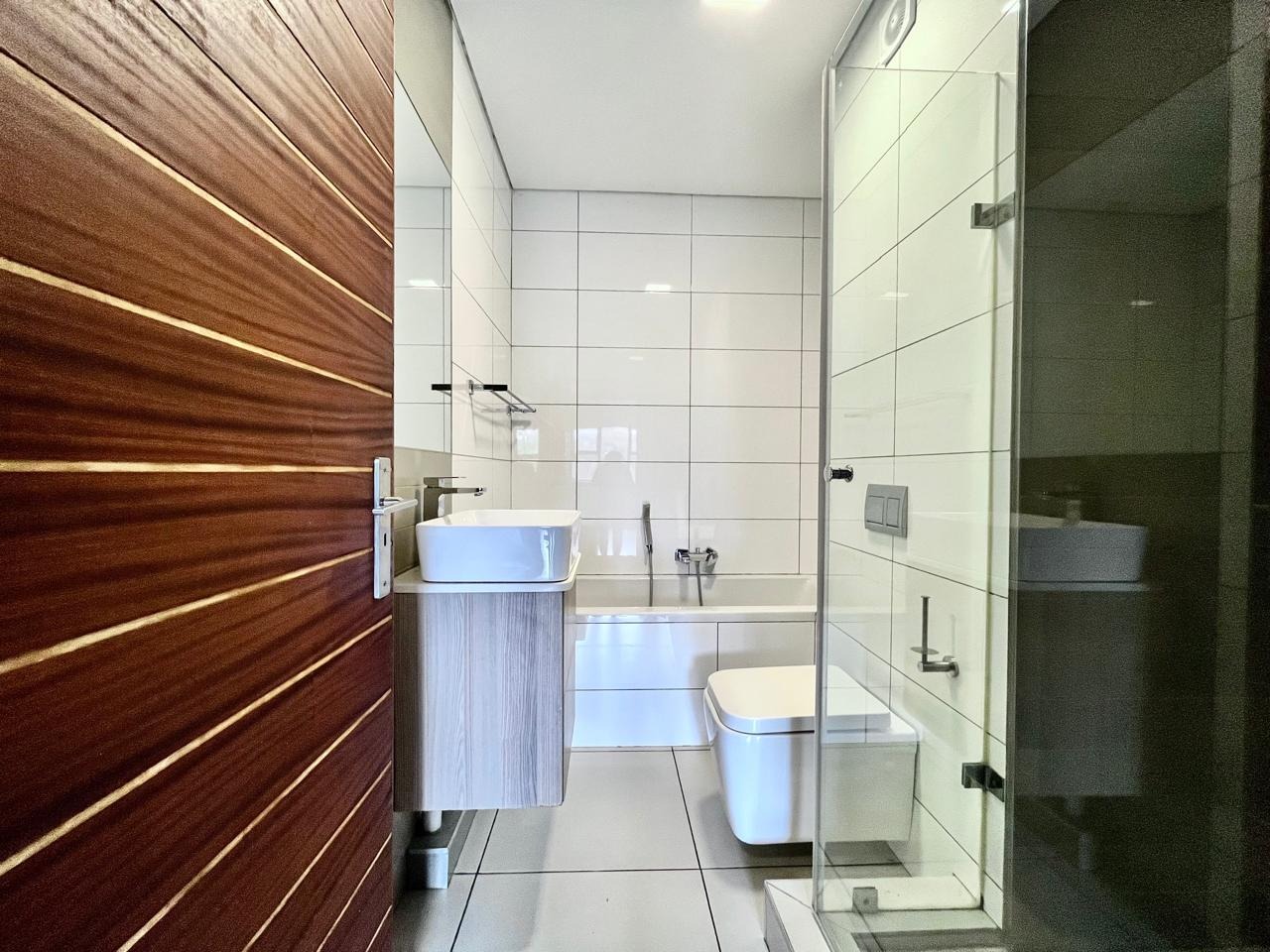 This contemporary 2-bedroom, 1-bathroom residence offers sophisticated living within a secure complex in Menlo Park, Pretoria. The open-plan design features high vaulted ceilings with exposed trusses, enhancing space and light. A modern kitchen, equipped with stylish two-tone cabinetry and integrated appliances, seamlessly flows into the lounge. Both bedrooms include built-in wardrobes and receive ample natural light. The sleek bathroom boasts contemporary fixtures and a glass-enclosed shower. Ideal for professionals or small families, this unfurnished unit provides a versatile canvas. Residents benefit from electric fencing, fibre connectivity, two dedicated parking bays, and a communal braai area. The location offers convenient access to local amenities and transport routes.
