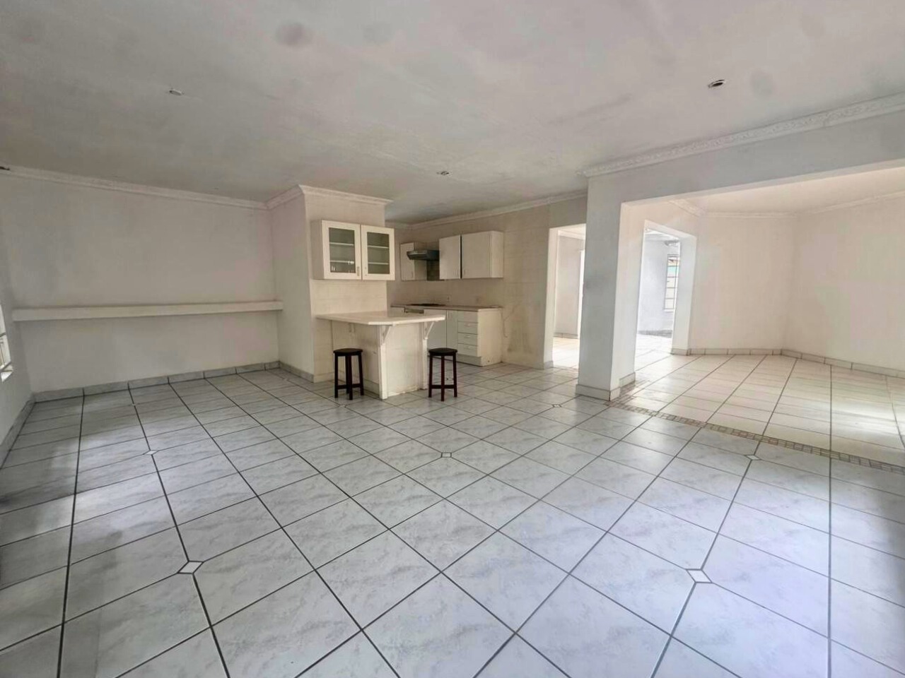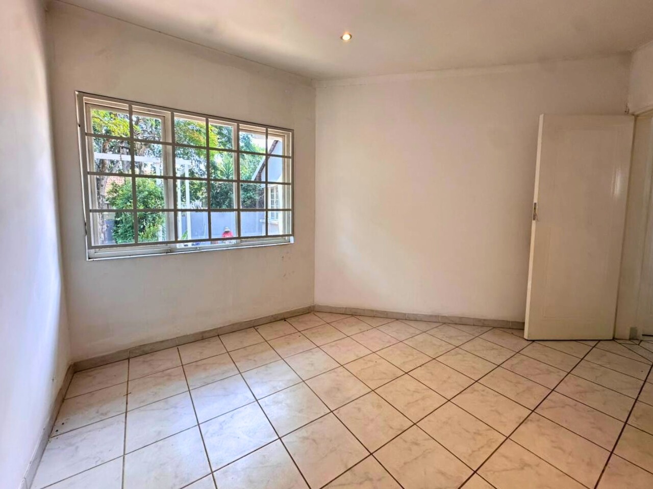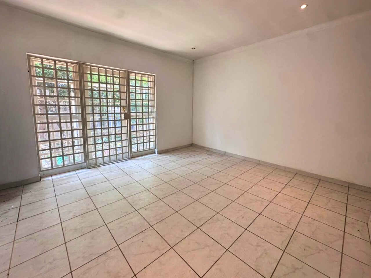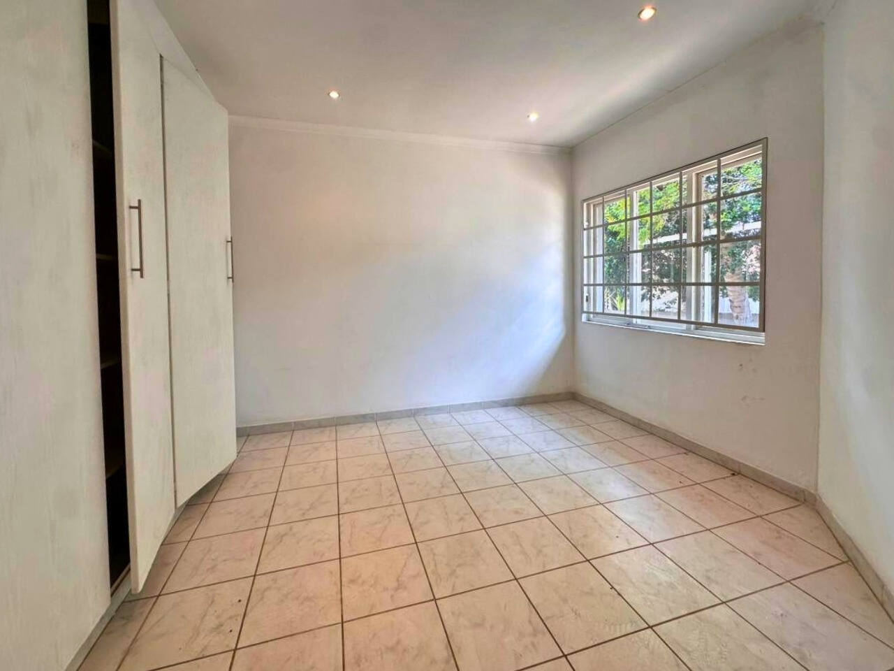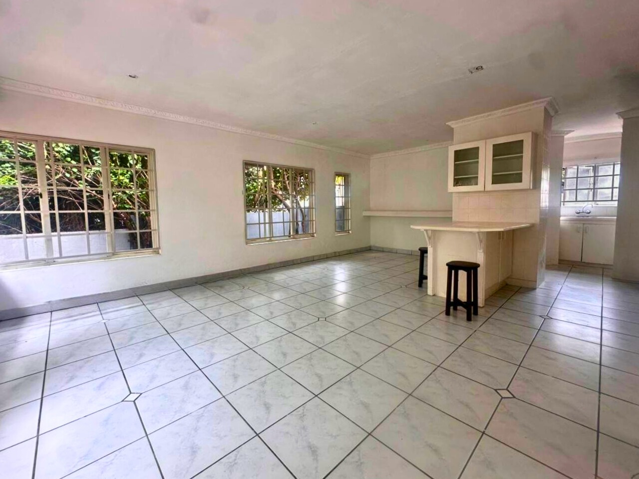 All three bedrooms are well sized with built-in cupboards. The main bedroom includes an en-suite bathroom, while the second bathroom serves the remaining rooms. Large windows bring in good natural light, fitted with burglar bars for added peace of mind.