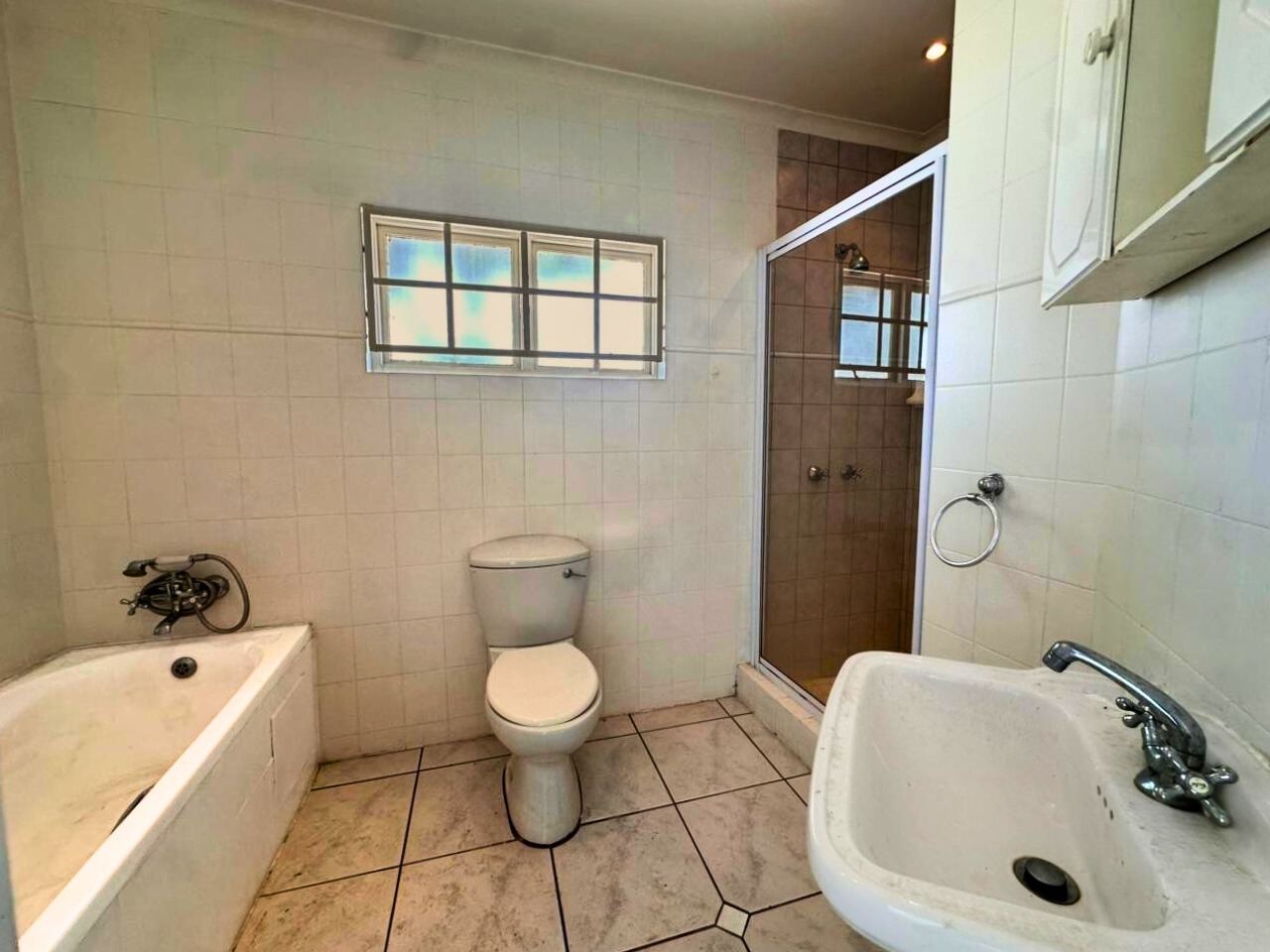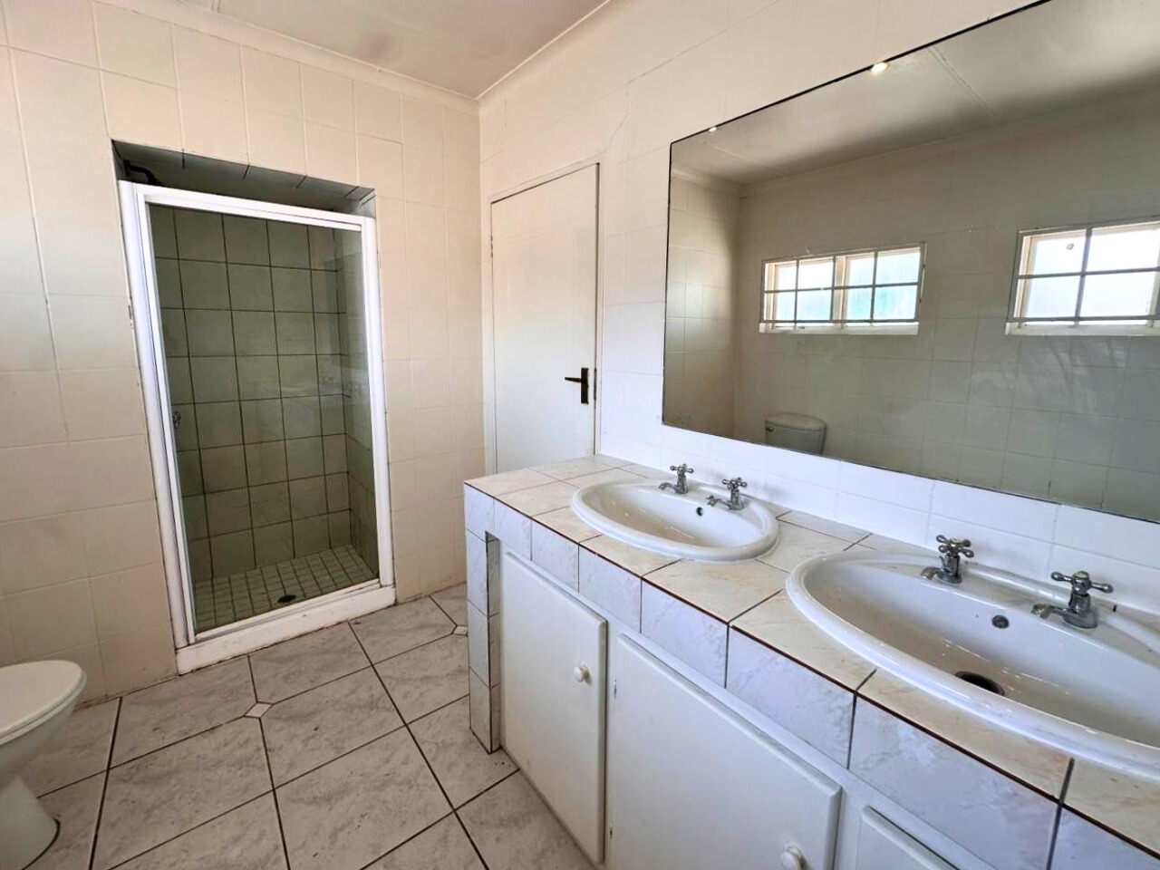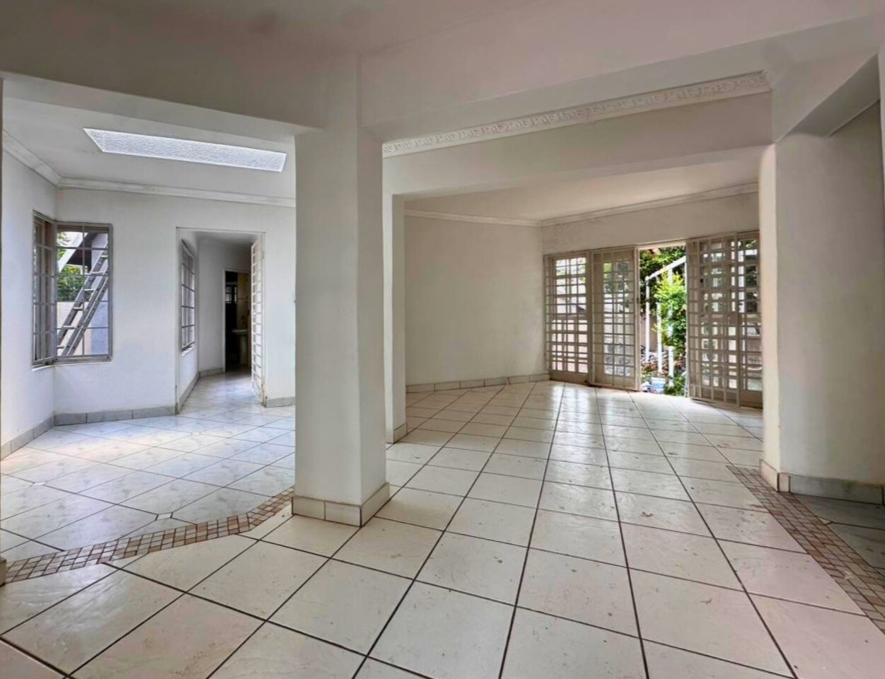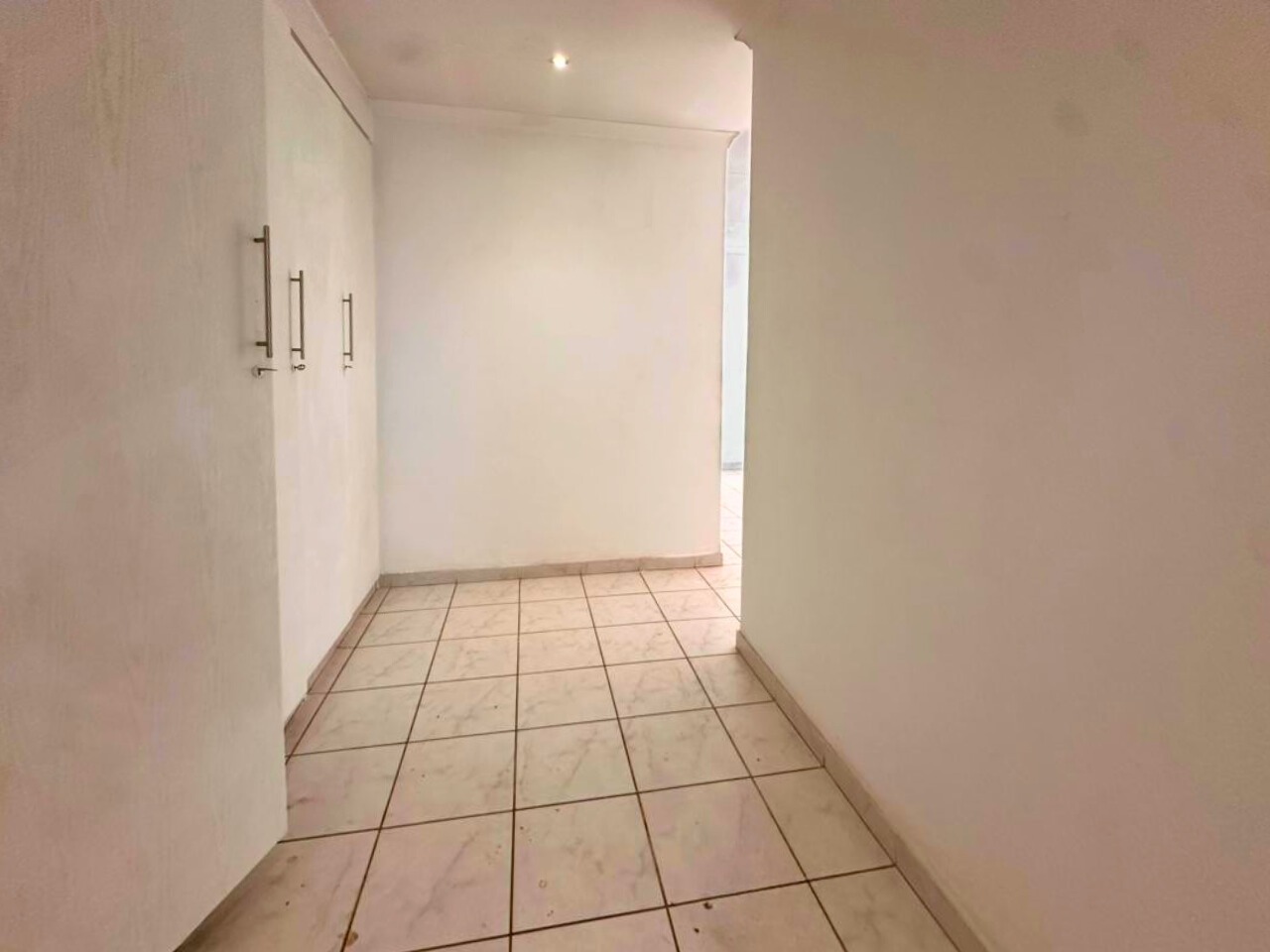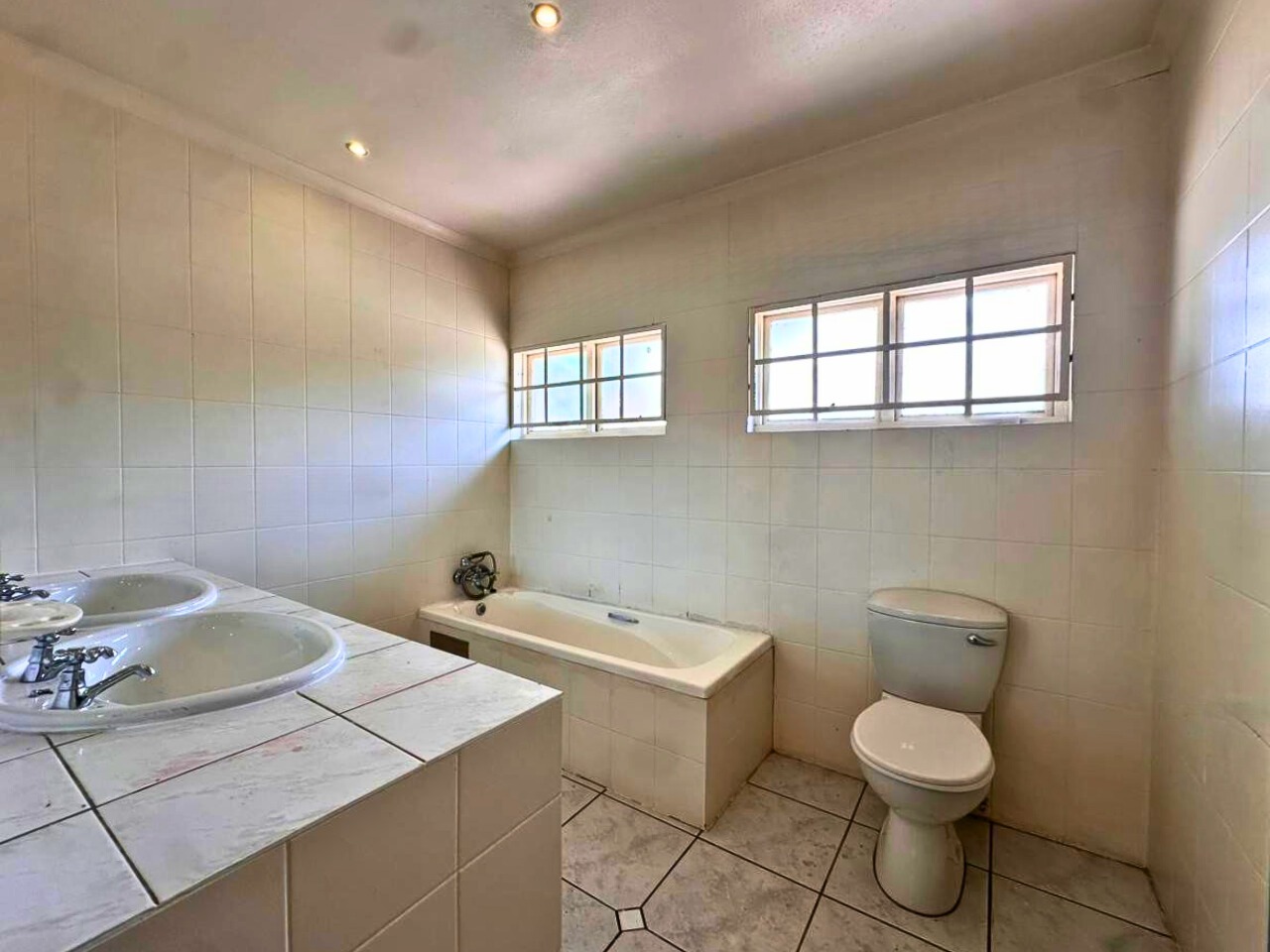 All three bedrooms are well sized with built-in cupboards. The main bedroom includes an en-suite bathroom, while the second bathroom serves the remaining rooms. Large windows bring in good natural light, fitted with burglar bars for added peace of mind.