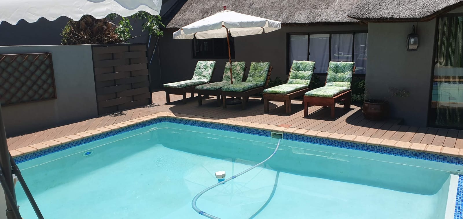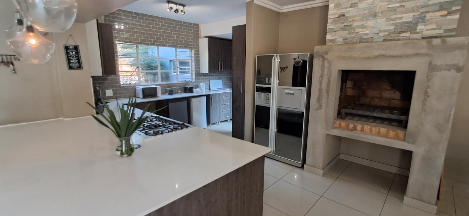 All the living areas flow out to a lovely outside patio area, a swimming pool, a lapa with a built-in bar and jacuzzi and a nice manicured garden.