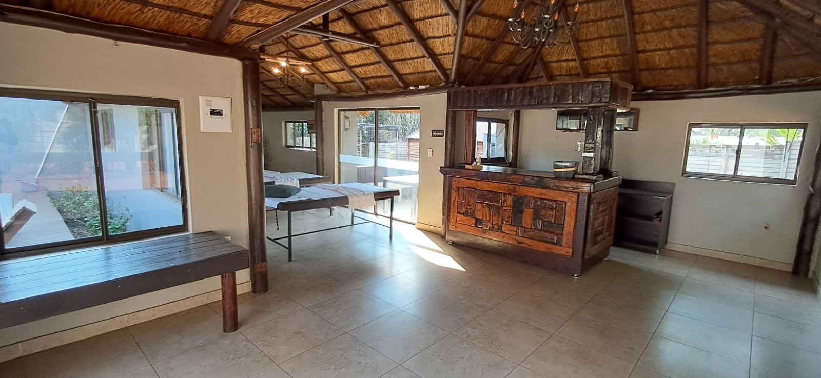 All the living areas flow out to a lovely outside patio area, a swimming pool, a lapa with a built-in bar and jacuzzi and a nice manicured garden.
