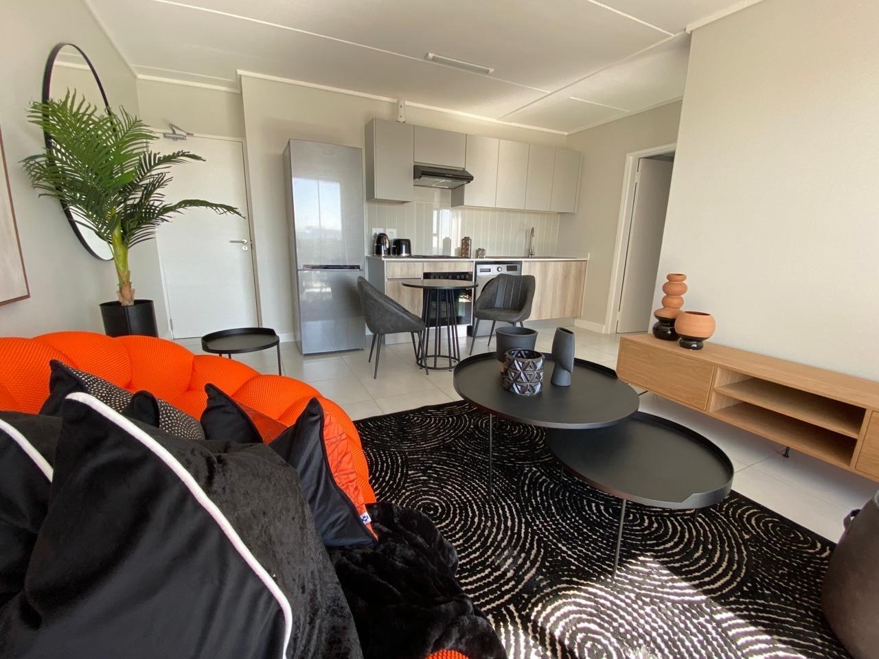 The open-plan living area flows seamlessly into a sleek, modern kitchen that comes fully equipped with essential appliances, including a fridge and a washing machine. The apartment is fibre-ready, making it ideal for professionals or anyone needing fast and reliable internet connectivity for work or entertainment.