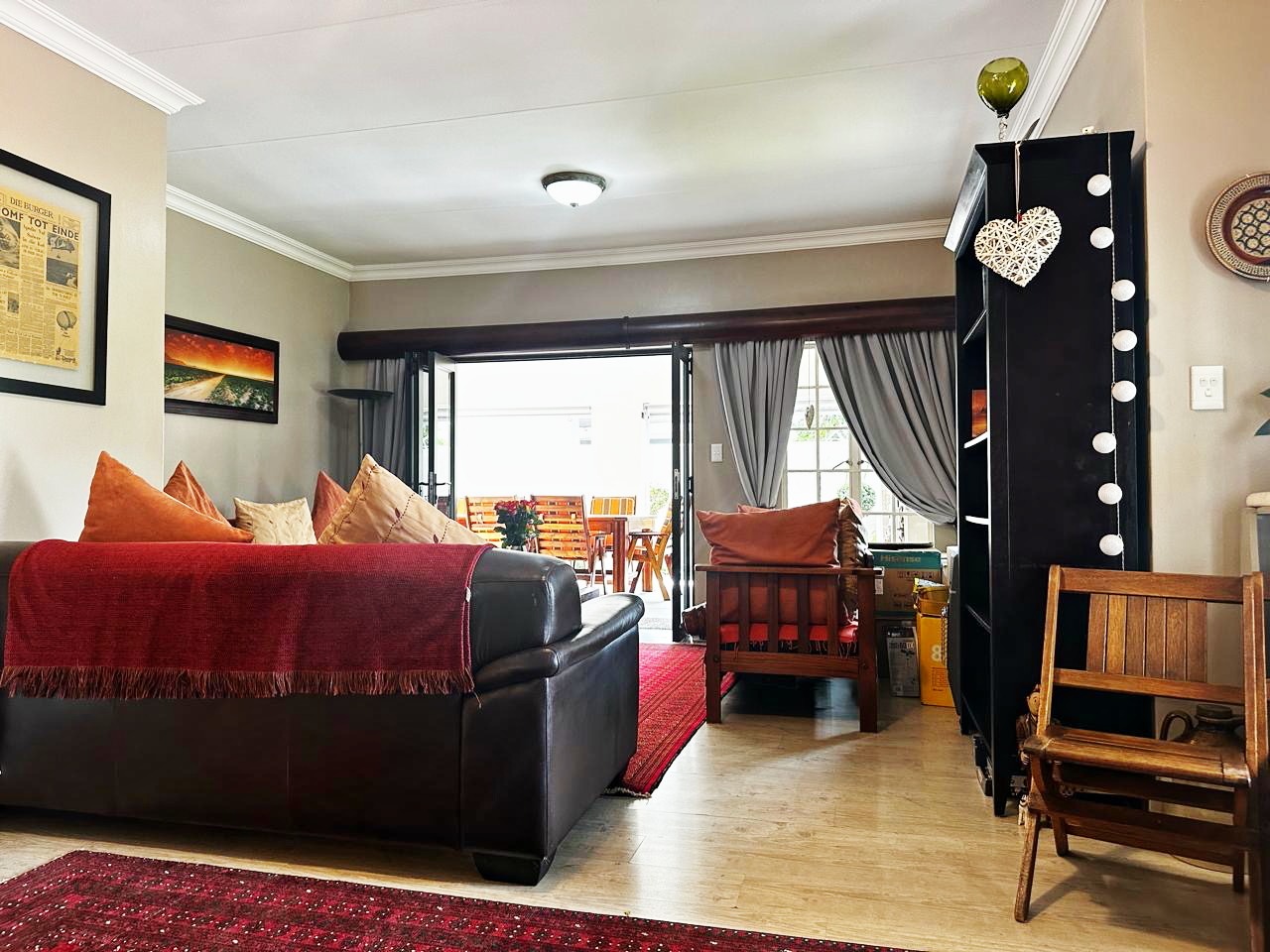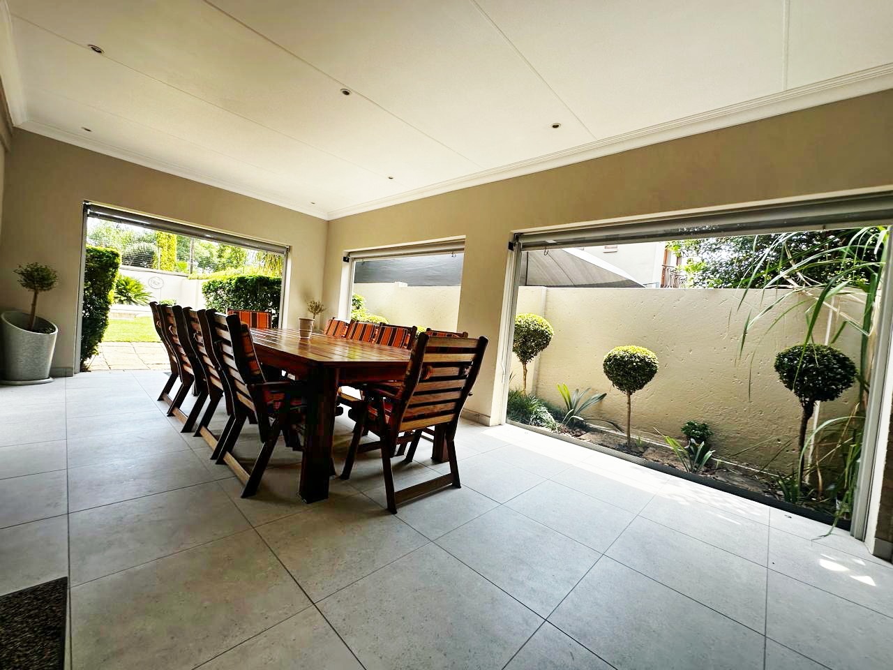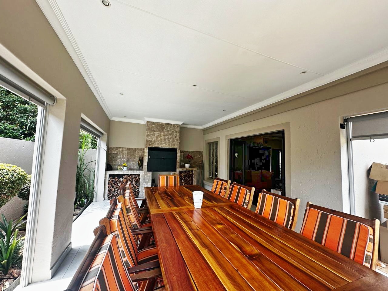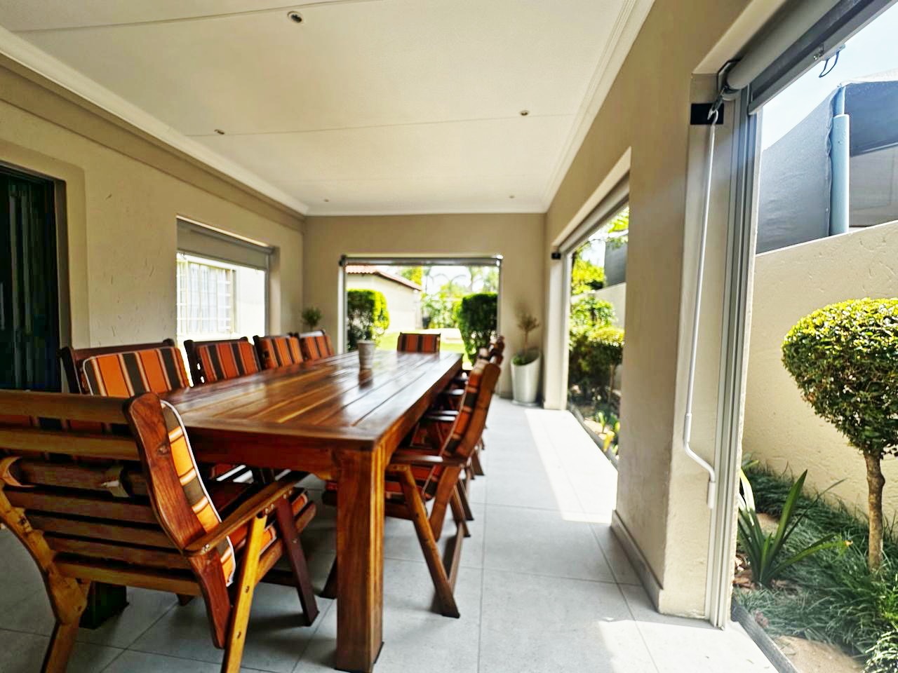 Step outside to enjoy the enclosed patio with a built-in braai, overlooking a heated swimming pool and a beautifully maintained garden, perfect for relaxing weekends with family and friends.