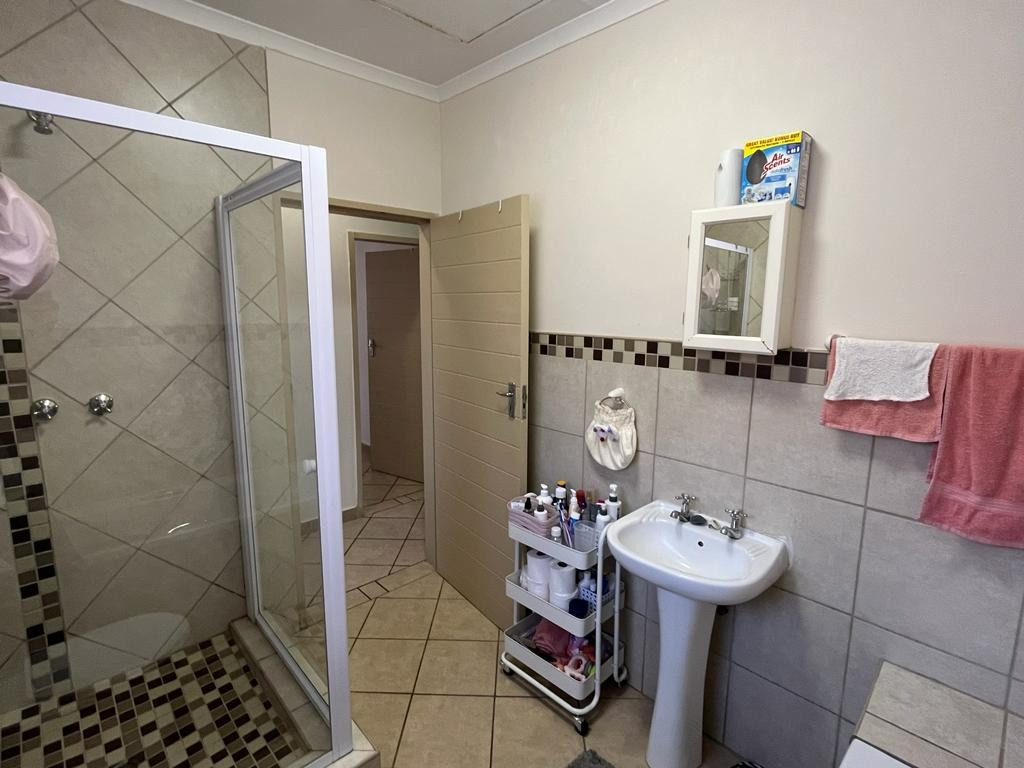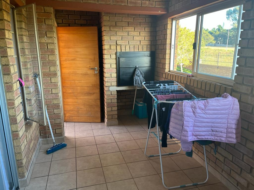 The two bedrooms offer practical living spaces, each featuring tiled floors and built-in wardrobes for ample storage. The single bathroom is functional, boasting both a bathtub and a separate glass-enclosed shower, along with tiled walls and flooring. Natural light fills the rooms, enhancing the welcoming atmosphere. Enclosed braai area for relaxation and all year round braai encounters.