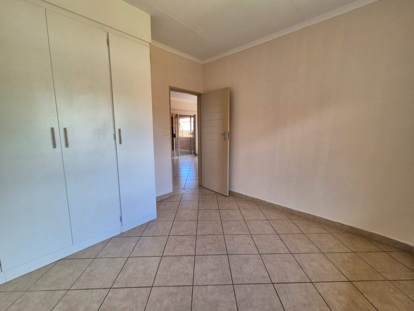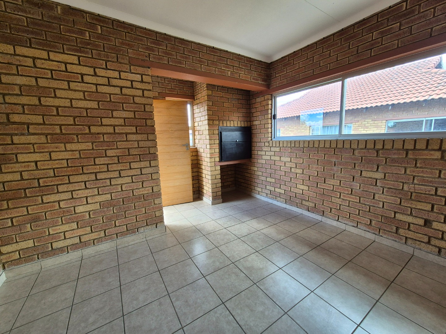 The two bedrooms offer practical living spaces, each featuring tiled floors and built-in wardrobes for ample storage. The single bathroom is functional, boasting both a bathtub and a separate glass-enclosed shower, along with tiled walls and flooring. Natural light fills the rooms, enhancing the welcoming atmosphere. Enclosed braai area for relaxation and all year round braai encounters.