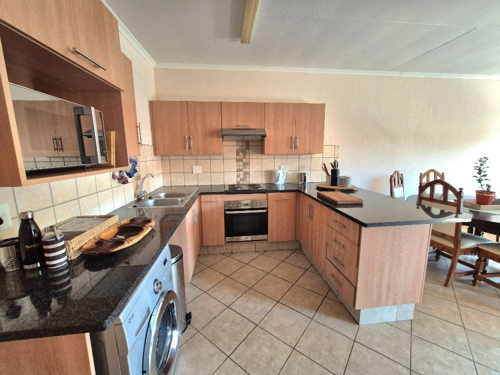Step outside to a private, covered balcony or patio, perfect for relaxation and entertaining. This outdoor area includes a built-in braai, offering an excellent spot for weekend barbecues while enjoying views of the surrounding residential area. The apartment also benefits from a dedicated single garage, providing secure parking and additional storage. Residents can enjoy access to a communal pool within the complex, adding to the lifestyle appeal.