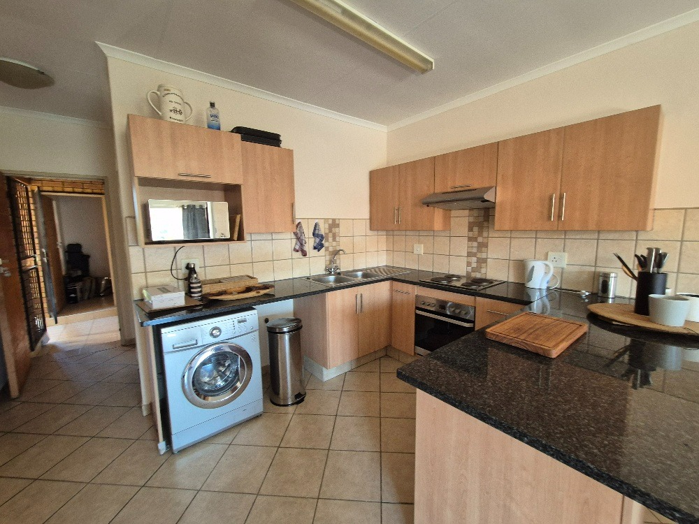 Security is a priority within this complex, which is situated in a cul-de-sac for added peace and quiet. The property features a fence, security post, access gate, and electric fencing, all contributing to a secure environment with 24-hour security. Burglar bars and security gates further enhance peace of mind. For modern connectivity, the apartment is fibre-ready.