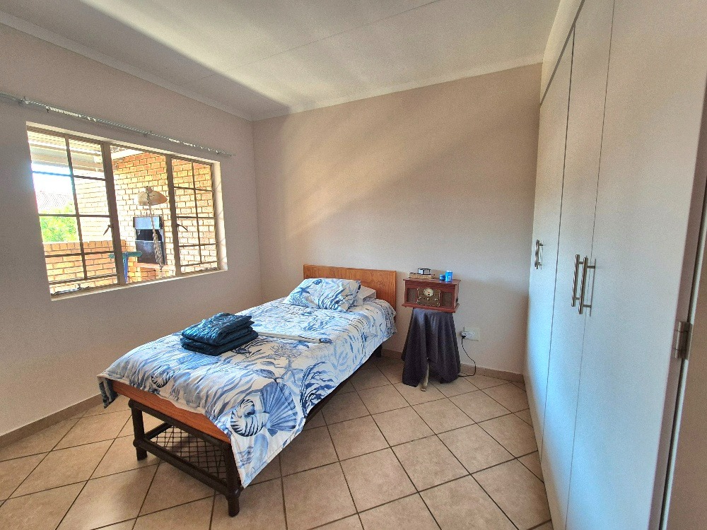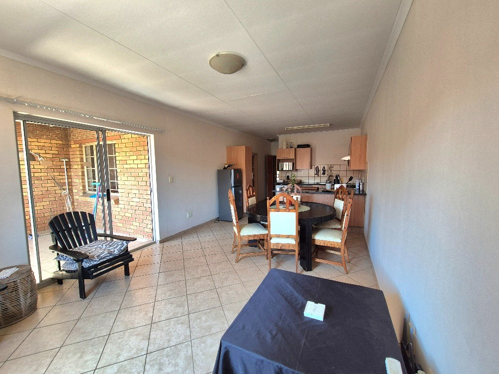 Step outside to a private, covered balcony or patio, perfect for relaxation and entertaining. This outdoor area includes a built-in braai, offering an excellent spot for weekend barbecues while enjoying views of the surrounding residential area. The apartment also benefits from a dedicated single garage, providing secure parking and additional storage. Residents can enjoy access to a communal pool within the complex, adding to the lifestyle appeal.