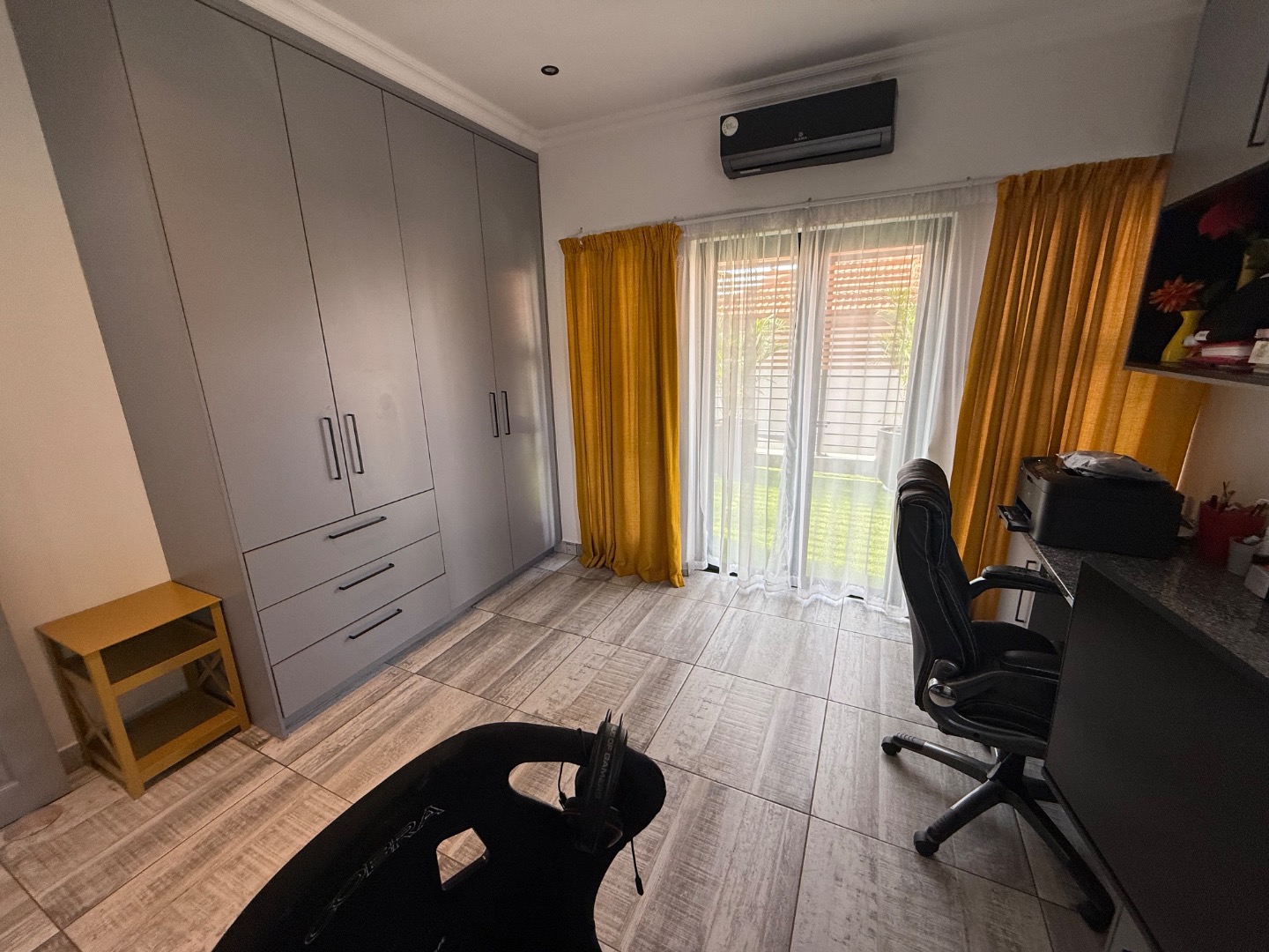 This exceptional residential rental property offers a spacious and modern living experience within the secure Rose Acres Estate in Pretoria North. Boasting a generous floor size of 320 sqm, this home features four well appointed bedrooms and three and a half bathrooms, including two en-suite facilities and a convenient guest toilet. The interior layout is designed for comfort and functionality, comprising an inviting entrance hall, a dedicated lounge, a dining room perfect for family meals. The well equipped kitchen includes a practical pantry, while a separate laundry area adds to the home's convenience. Enjoy year round comfort with air conditioning and entertain guests effortlessly with a built in bar and sliding doors that enhance the flow of living spaces.