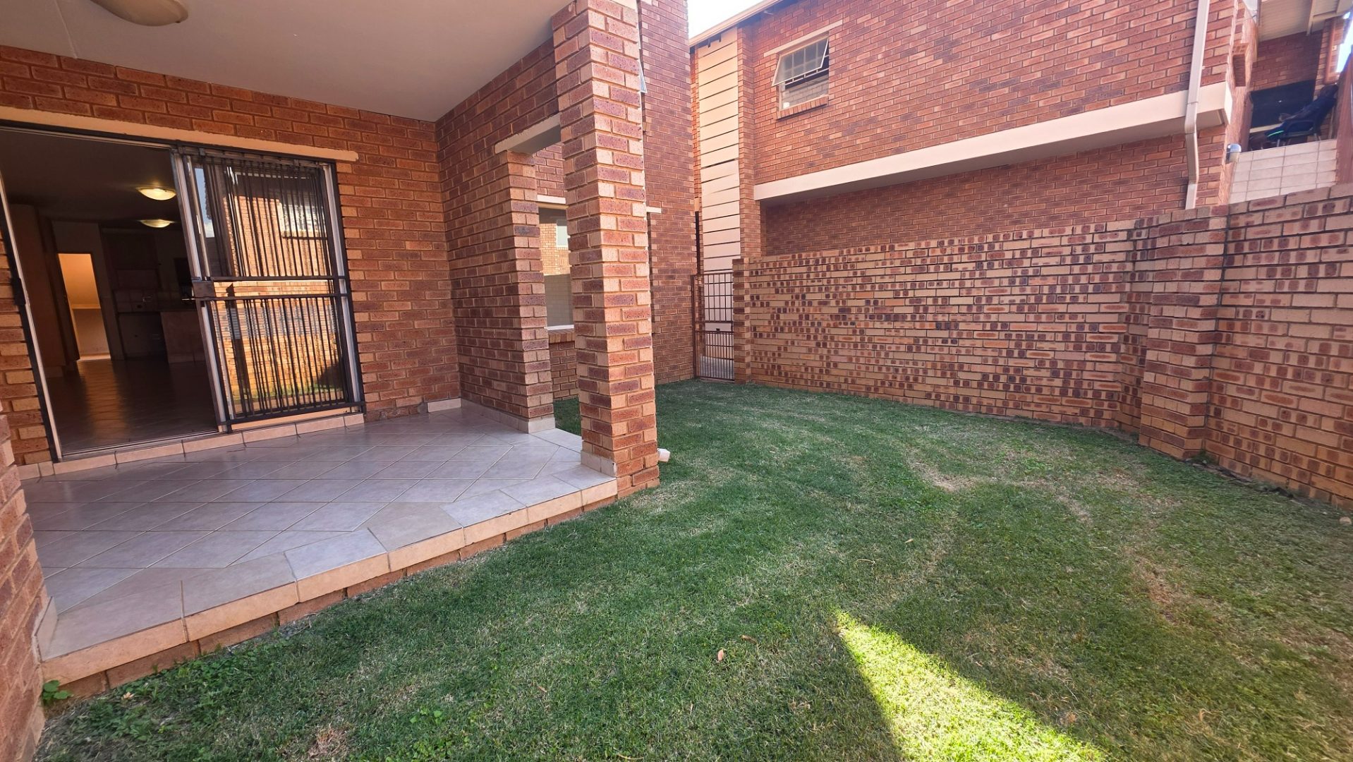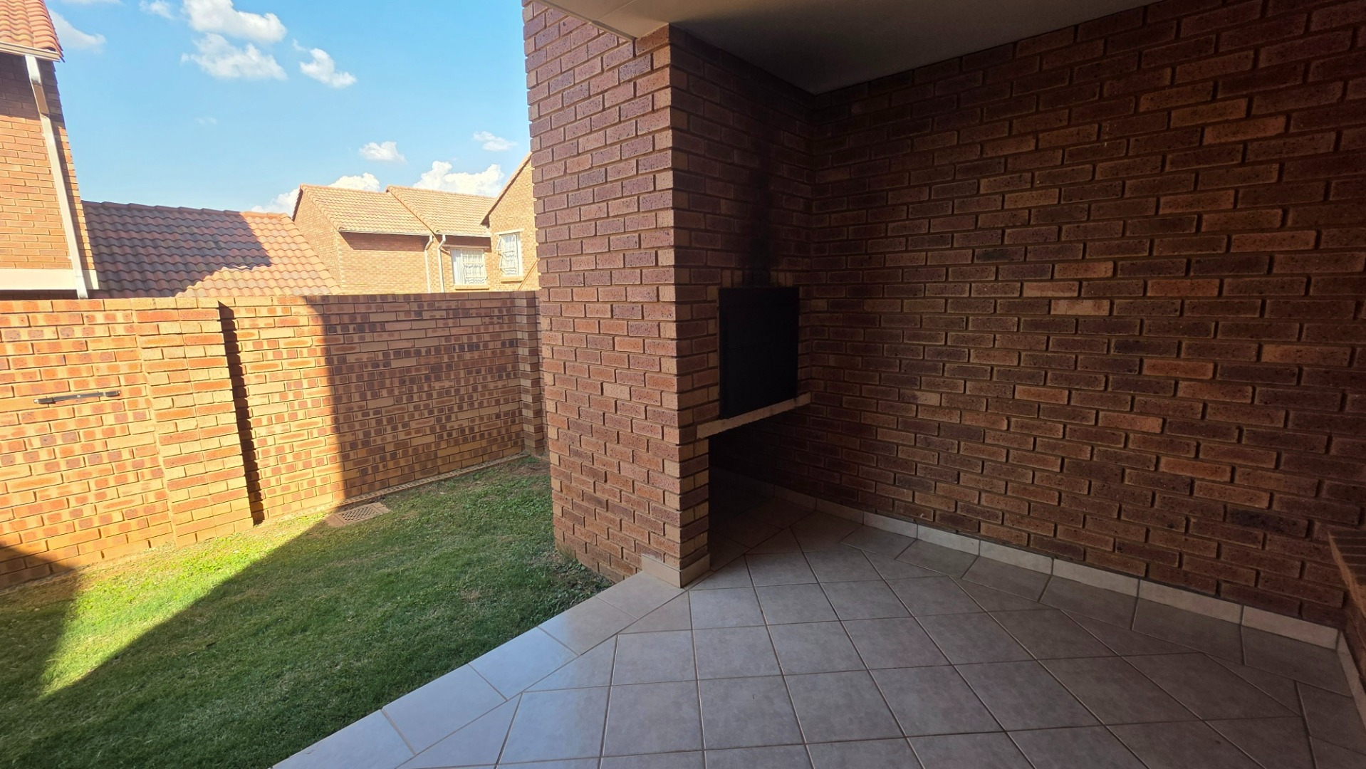 Each bedroom benefits from natural light and includes built-in wardrobes for practical storage solutions. The bathrooms offer a choice between a walk-in shower with a glass enclosure and a full-size bathtub, both featuring tiled walls and floors. Step outside to a private, covered patio area, perfect for entertaining, complete with a built-in brick braai and clean tiled flooring. This outdoor space extends to a small, low-maintenance garden, offering a tranquil retreat.