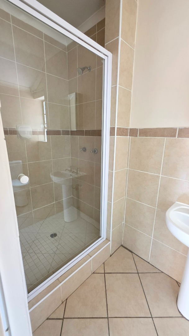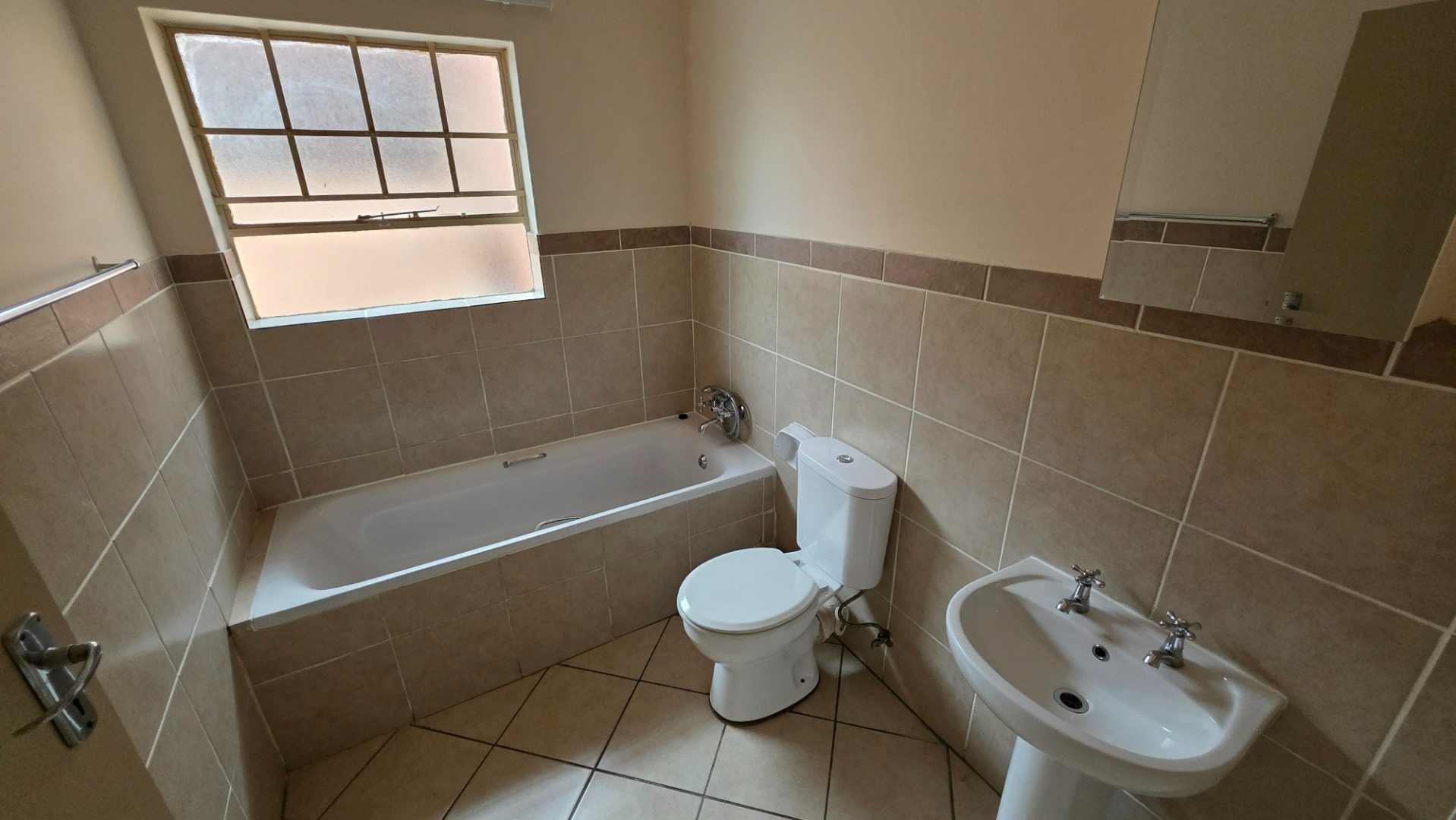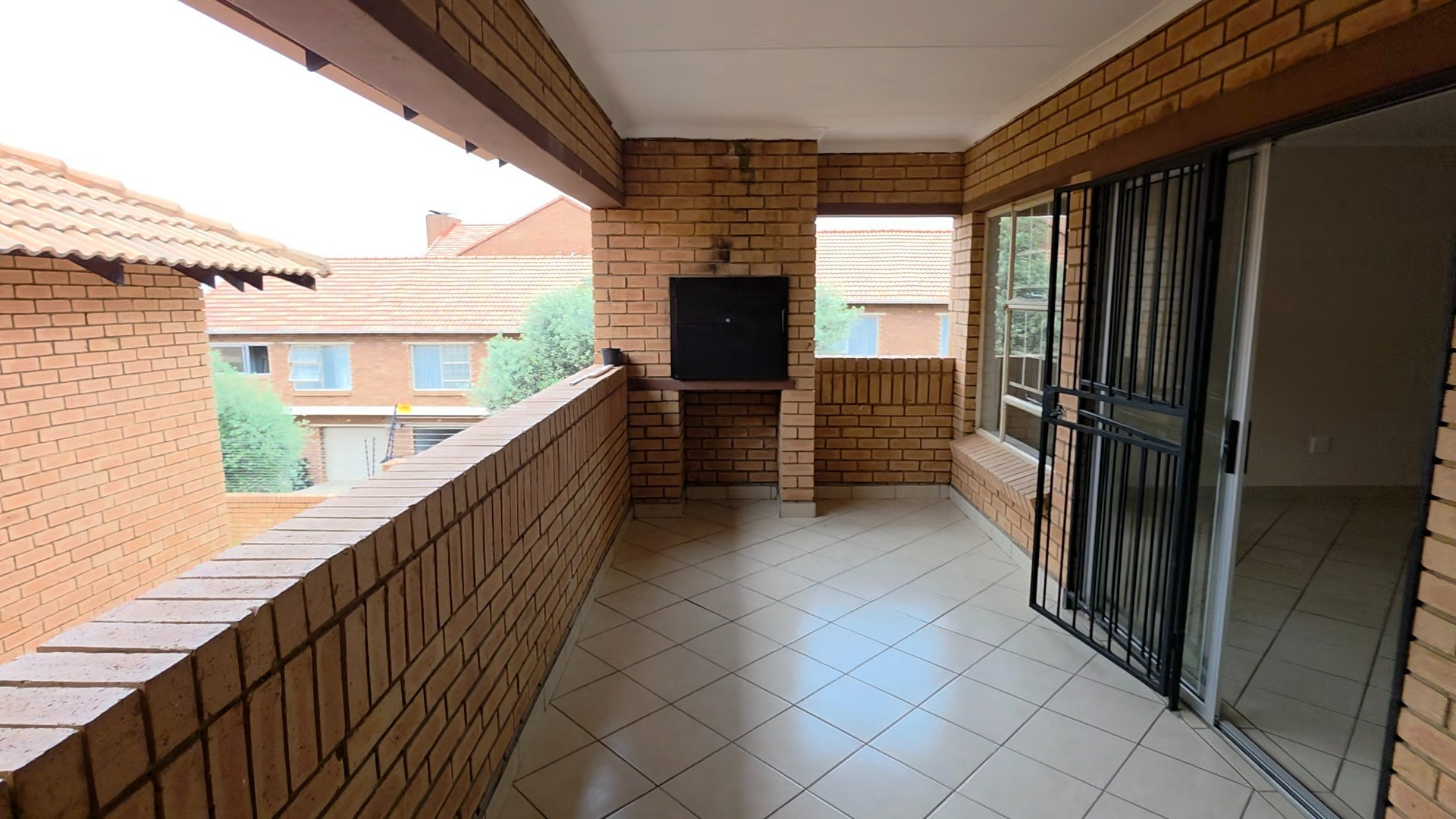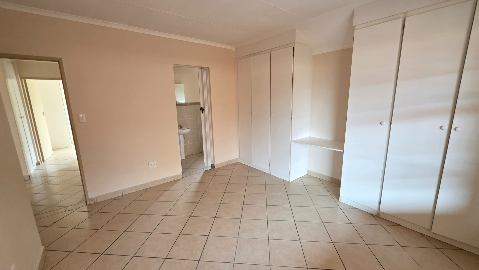 This inviting 2-bedroom, 2-bathroom apartment, including one ensuite, offers a comfortable and secure living experience within a well-maintained residential development in Silver Lakes, Pretoria. Spanning 123 square meters, the residence features a practical open-plan layout that seamlessly connects the living area with a modern kitchen. The kitchen is well-appointed with light wood cabinetry, dark granite-look countertops, a built-in oven and hob, a double sink, and ample storage, including a pantry. Tiled flooring and neutral walls throughout create a clean, versatile canvas ready for personal touches.