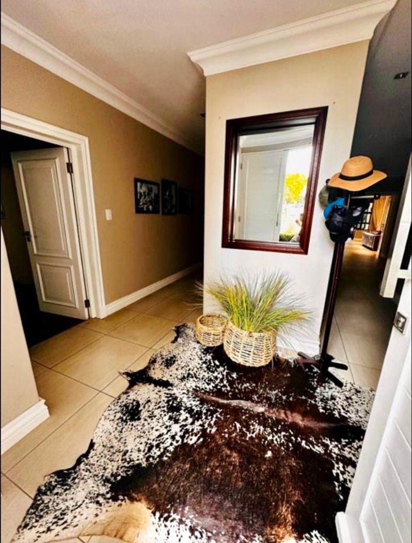 Embrace the quintessential South African outdoor lifestyle with a captivating patio, complete with a built-in braai, perfect for entertaining guests. The sparkling private pool, set within a meticulously irrigated garden, provides a serene escape. Modern comforts abound, including air conditioning for year-round climate control and a charming fireplace for cooler evenings. This pet-friendly residence ensures every member of the family feels at home.