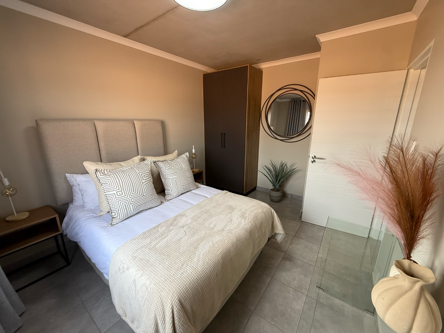 Security is a paramount feature of this rental, ensuring peace of mind with 24 hour security, a security post, access gates, electric fencing, and CCTV surveillance. Additional security gates on the sliding doors and a totally walled perimeter further enhance safety. The apartment is fibre ready, providing high speed internet connectivity, and benefits from a solar geyser, contributing to energy efficiency and reduced utility costs.