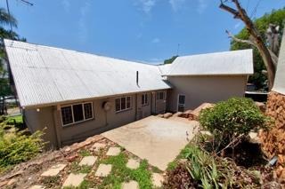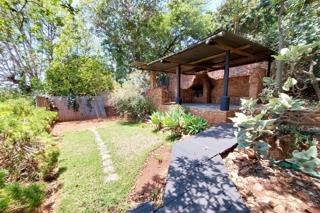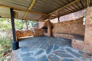 At the back nature rules with rock walls and rock stairwells leading to a covered entertainment area with built-in seating and built-in braai for entertainment.