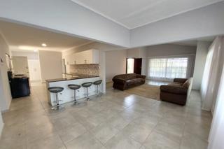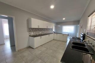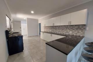 From the louvre covered patio you enter the spacious open-plan lounge, dining and kitchen area. A kitchen that offers a breakfast nook, granite tops, ample cupboards and a separate laundry room with built-in cupboards,