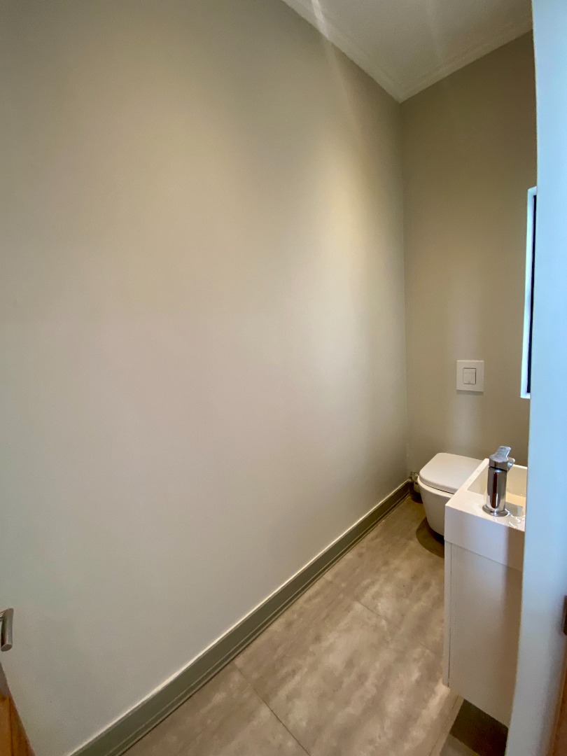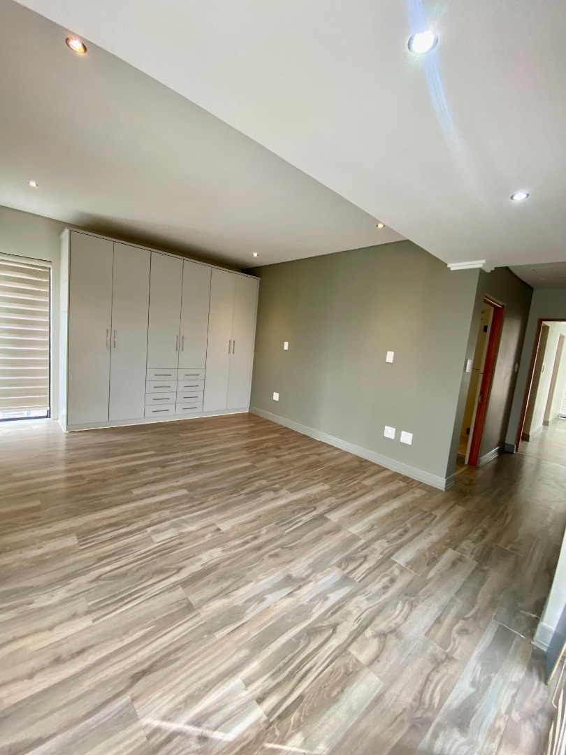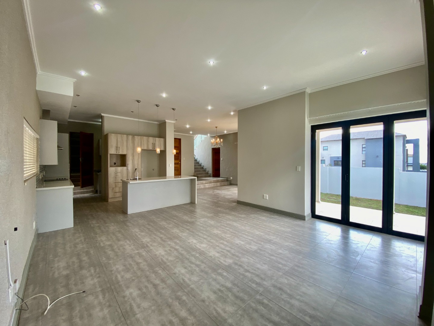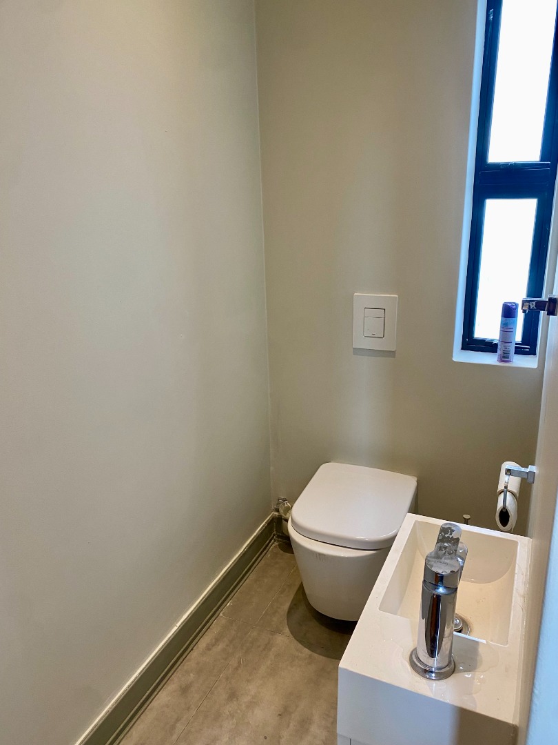 As you step through the main entrance, you are welcomed into a stunning open-plan living area. To your left, a stylish guest bathroom with a toilet and basin provides convenience for visitors. The space seamlessly flows into the lounge, dining area, and kitchen and scullery each defined by beautiful finishes, designer wall features, and exquisite flooring that enhance the home's contemporary aesthetic.