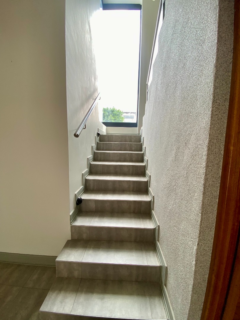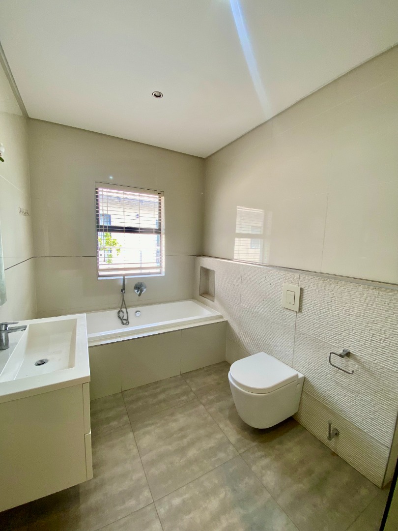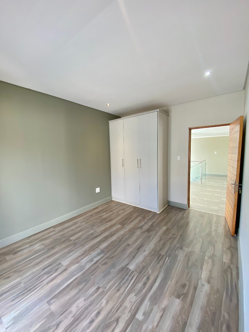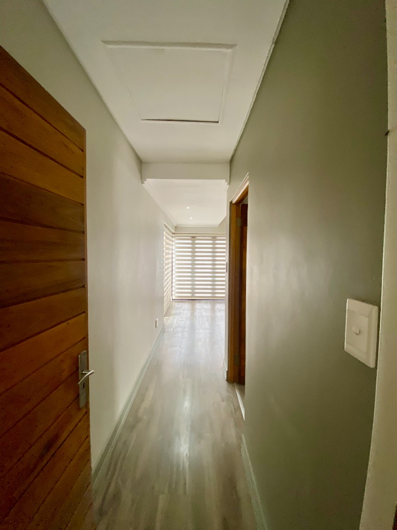 Upstairs, you are welcomed into a cozy pyjama lounge, perfect for relaxing with family. The first bedroom offers built-in cupboards, beautiful flooring, and direct access to a balcony overlooking the front of the home. The second bedroom also features built-in cupboards and shares a luxurious full bathroom that includes a large bathtub, walk-in shower, basin, and toilet designed with both comfort and style in mind.