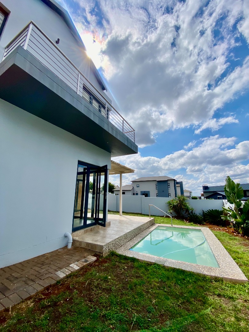 Outside, the home boasts a lovely patio with a built-in braai, manicured garden, and a sparkling swimming pool perfect for entertaining or enjoying serene weekends at home. The property includes a double garage and ample driveway parking. Located within a secure estate with 24-hour biometric access control, patrol vehicles, and top-class facilities including a gym, clubhouse, restaurant, tennis court, golf course, game reserve, and schools from preschool to high school this home offers an unmatched lifestyle of luxury, convenience, and security.