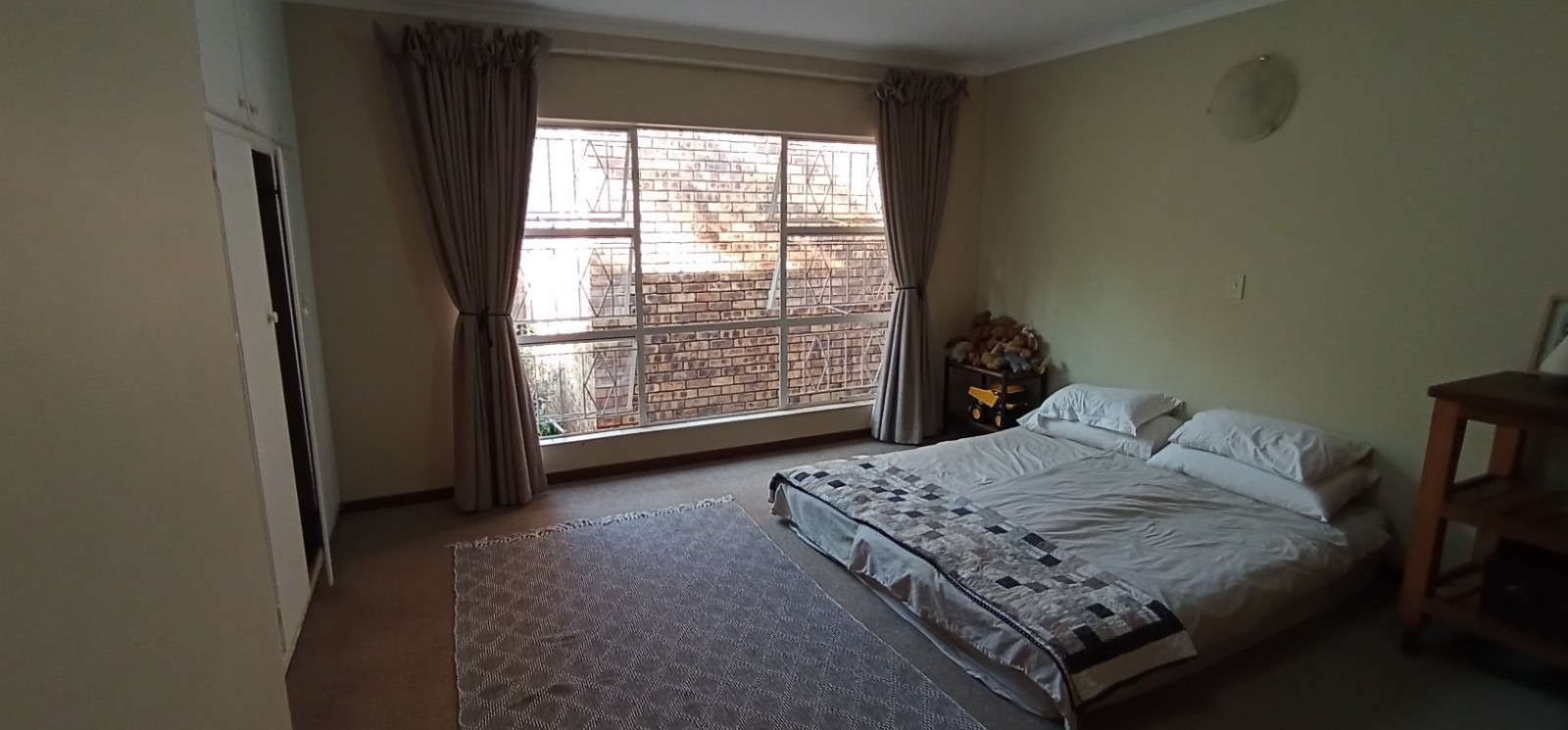 Up a few stairs you will find the master bedroom, with a spacious bathroom and walk in closet with all rooms fitted with wall to wall carpets.