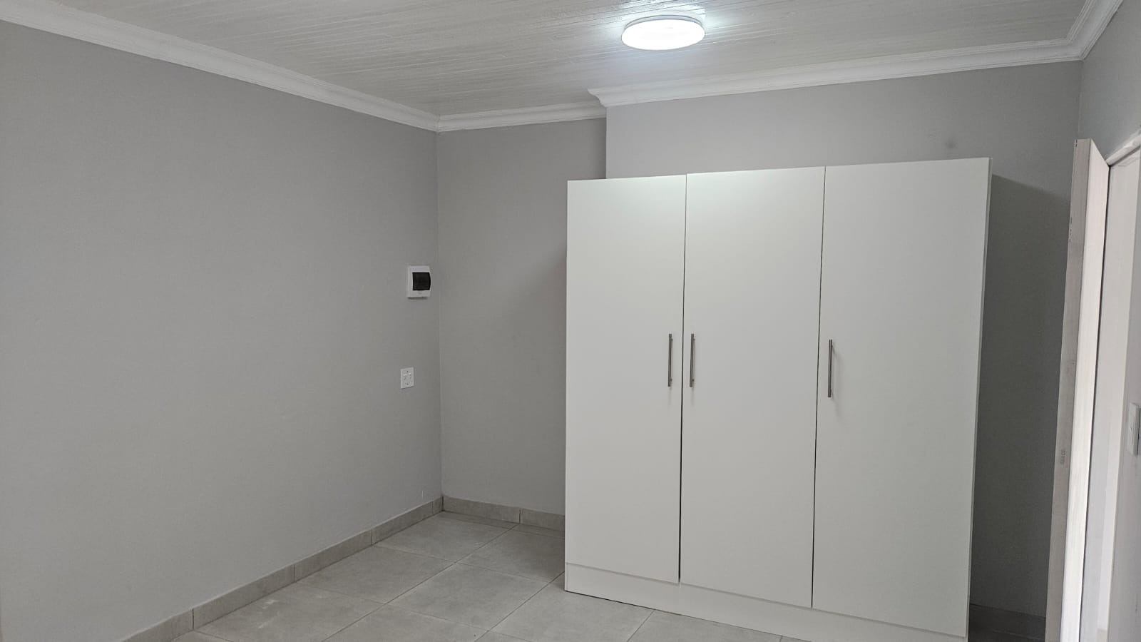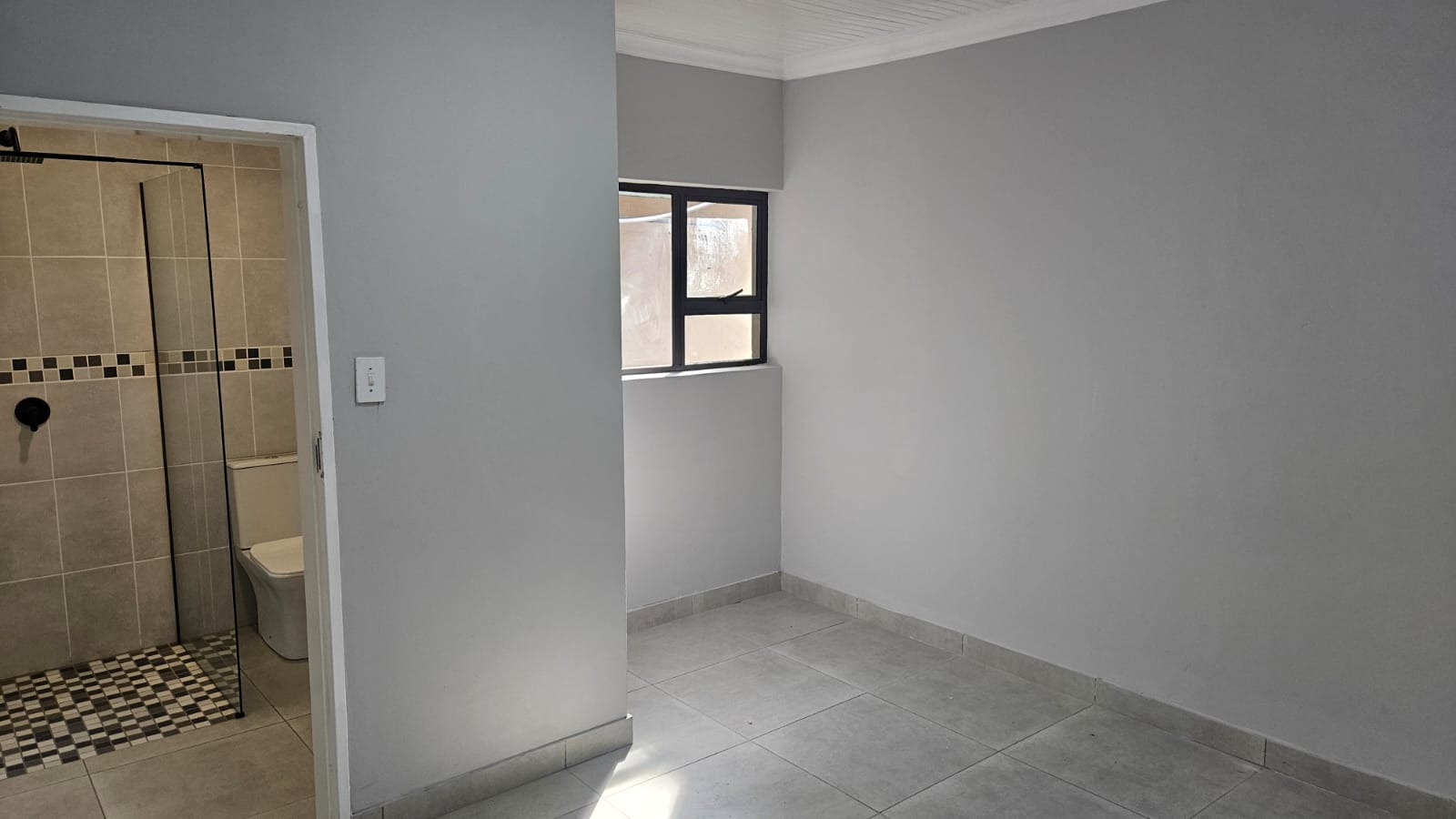 Discover this modern 1-bedroom, 1-bathroom rental unit located in the desirable suburban area of Waterkloof Ridge, Pretoria. Spanning 40 square meters, this compact home offers a contemporary aesthetic with freshly painted neutral grey walls and sleek tiled flooring throughout, ensuring easy maintenance. The open-plan layout seamlessly connects the living spaces, providing a comfortable and functional environment. The unit features a well-appointed kitchenette with clean white cabinets, dark countertops, and a practical tiled backsplash, providing essential amenities for daily living. The modern bathroom boasts light grey tiled walls, a stylish walk-in shower with a glass partition, and elegant black fixtures, creating a sophisticated and functional space. Enjoy a private tiled patio accessible via a sliding glass door, perfect for relaxation. Security is enhanced with a fence, access gate, and burglar bars, offering peace of mind. This property also benefits from solar panels, contributing to sustainable living. Ideal for a professional or individual, it offers a convenient, unfurnished lock-up-and-go lifestyle. Waterkloof Ridge is a sought-after residential area known for its tranquil environment and convenient access to local amenities in Pretoria, South Africa. Key Features: * 1 Bedroom, 1 Bathroom * 1 Lounge, 1 Kitchen * 40 sqm Floor Size * Modern Finishes * Private Tiled Patio * Security Features (Fence, Access Gate, Burglar Bars) * Solar Panels * 1 Parking Bay * Unfurnished