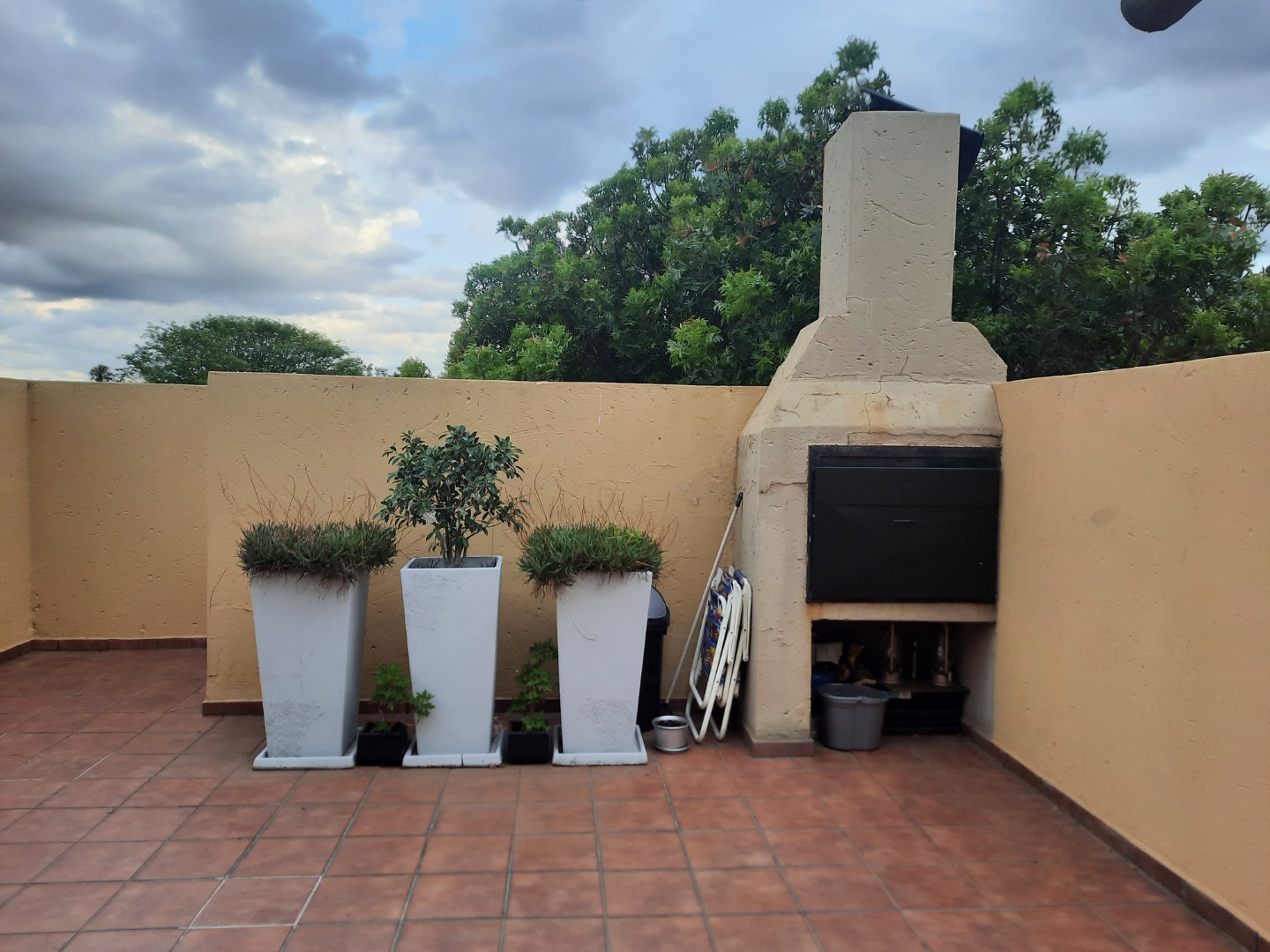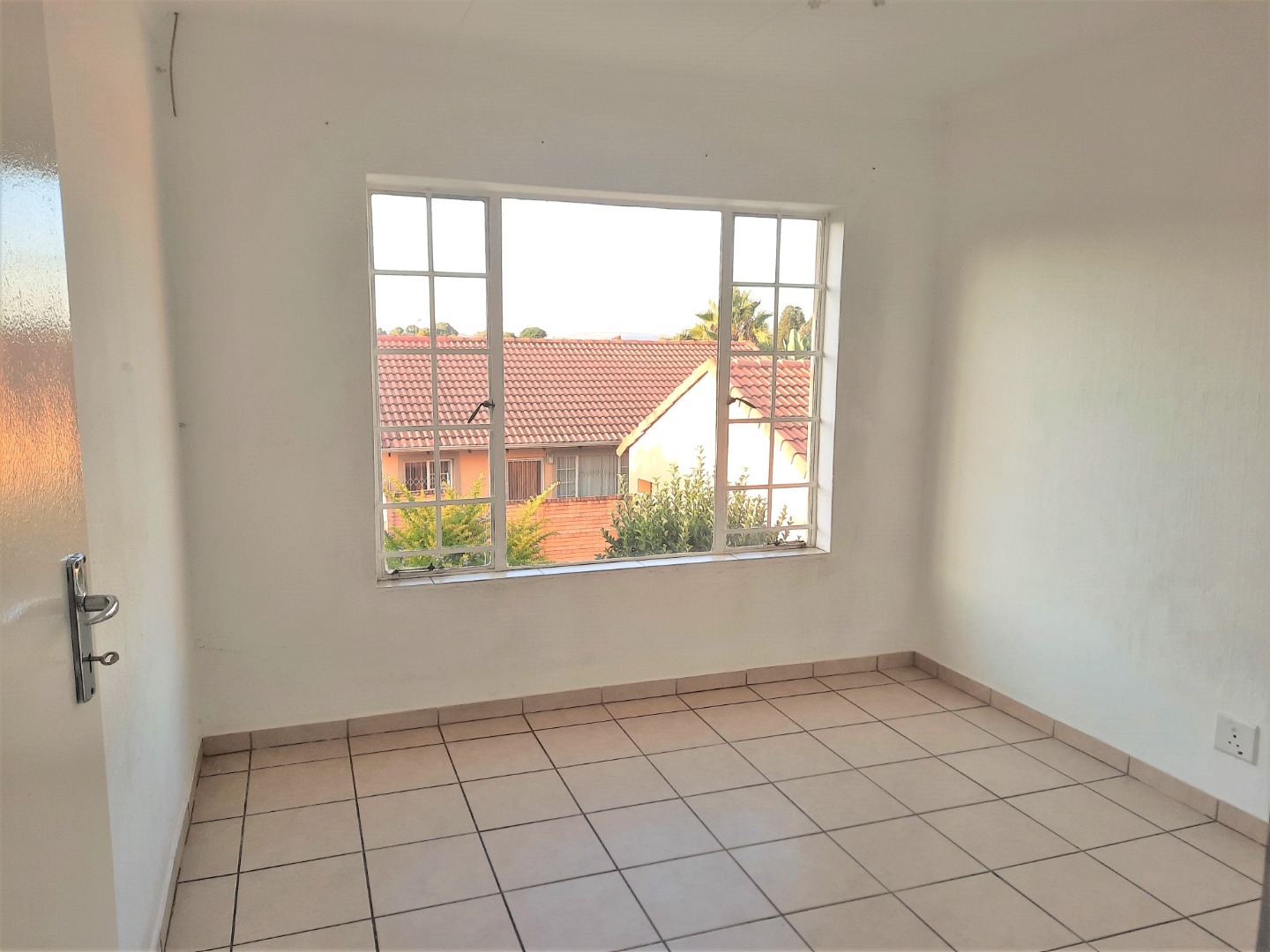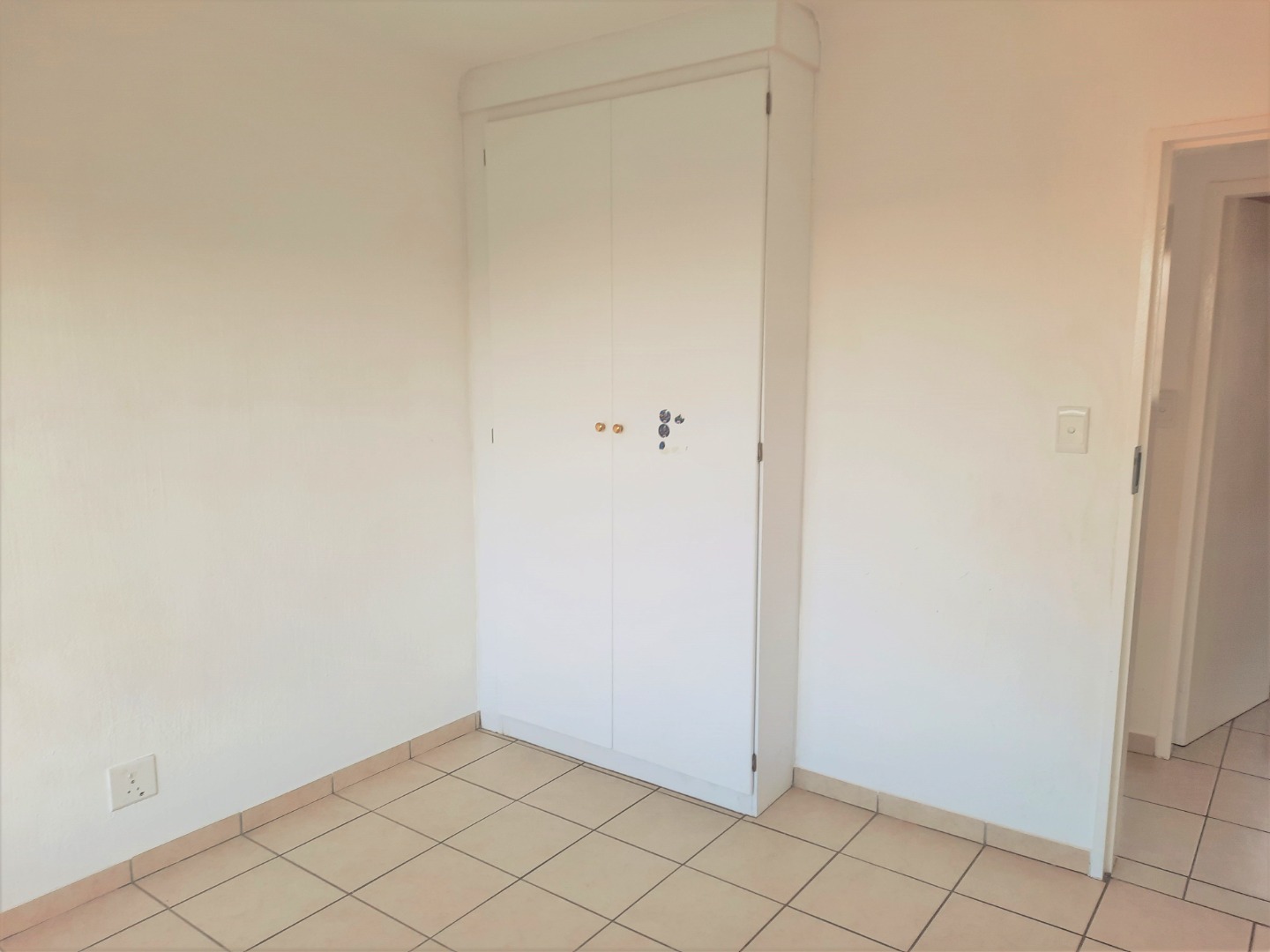 The unit features two sunny north-facing bedrooms with built-in cupboards and ample storage. The main bedroom includes an en-suite bathroom with a shower, while the second bathroom is fitted with a bath. Fully tiled throughout and fibre ready, this property combines convenience with modern living.
