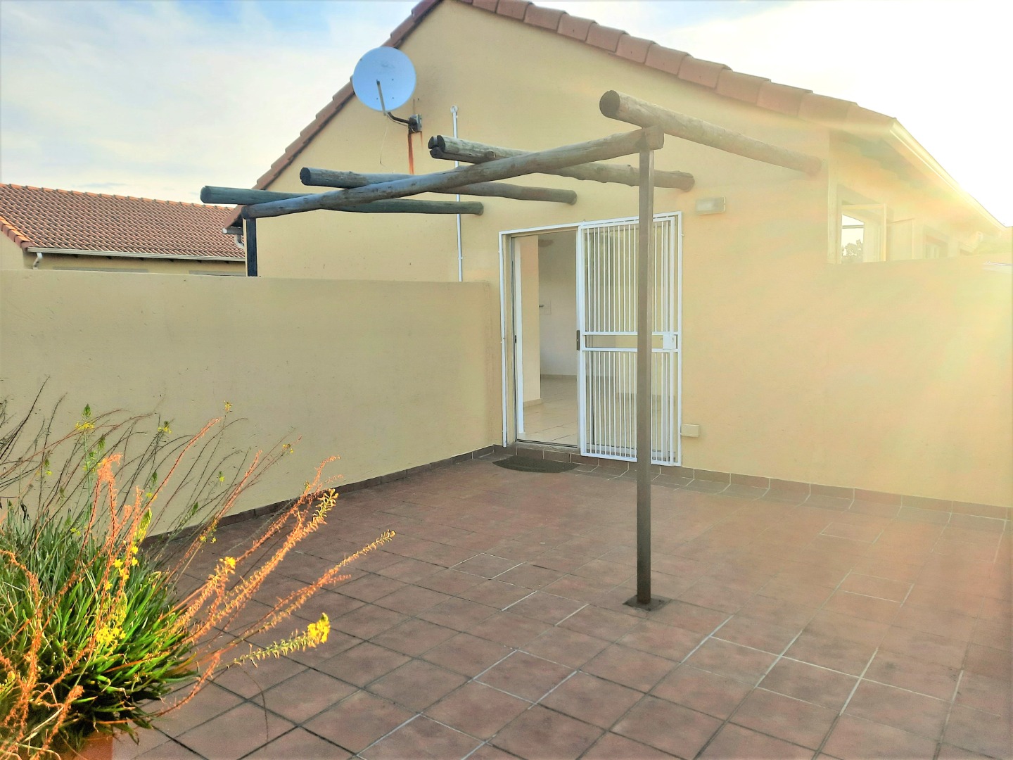The kitchen offers granite countertops with space for a dishwasher, washing machine and fridge/freezer. The open-plan dining and living area flows seamlessly onto a private patio with a built-in braai, creating the perfect space for entertaining.