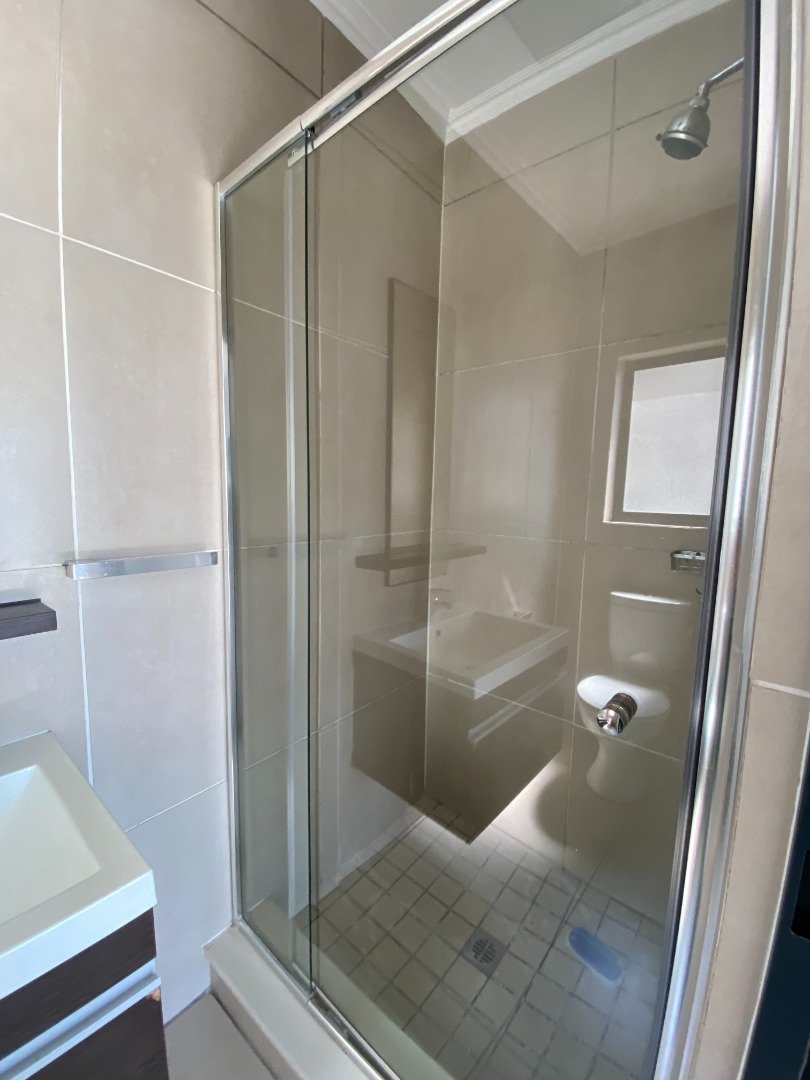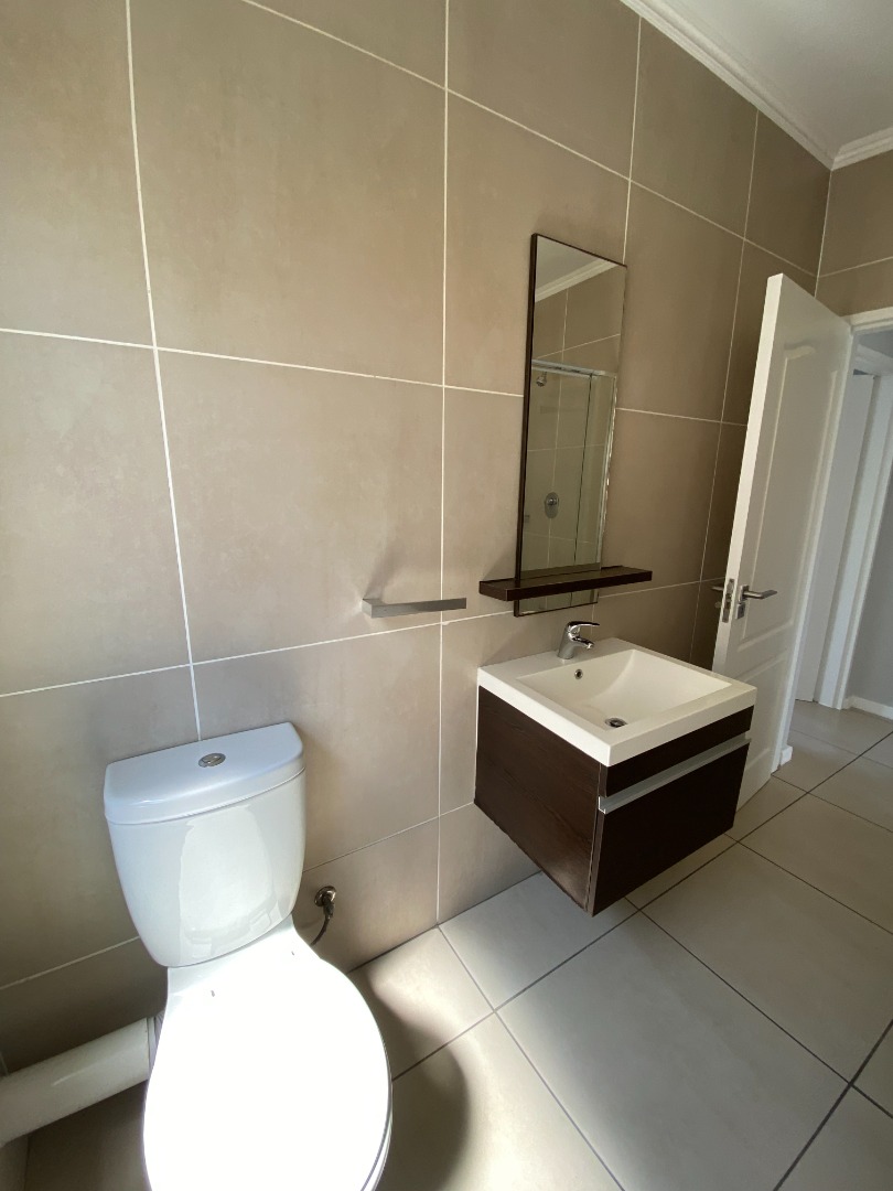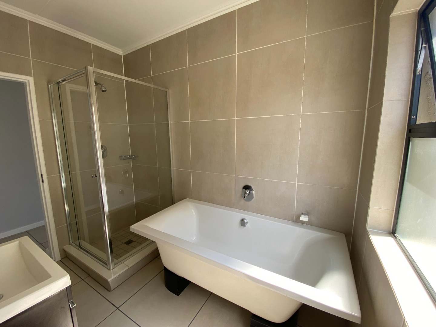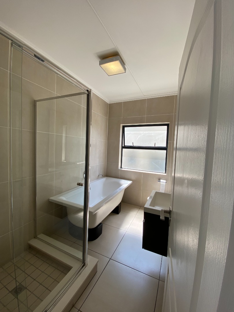 The main bedroom includes built-in cupboards and a private en-suite bathroom complete with a shower, basin, and toilet. The second bedroom, also fitted with built-in cupboards, is serviced by a second bathroom featuring a bathtub, shower, and basin — perfect for guests or family living.