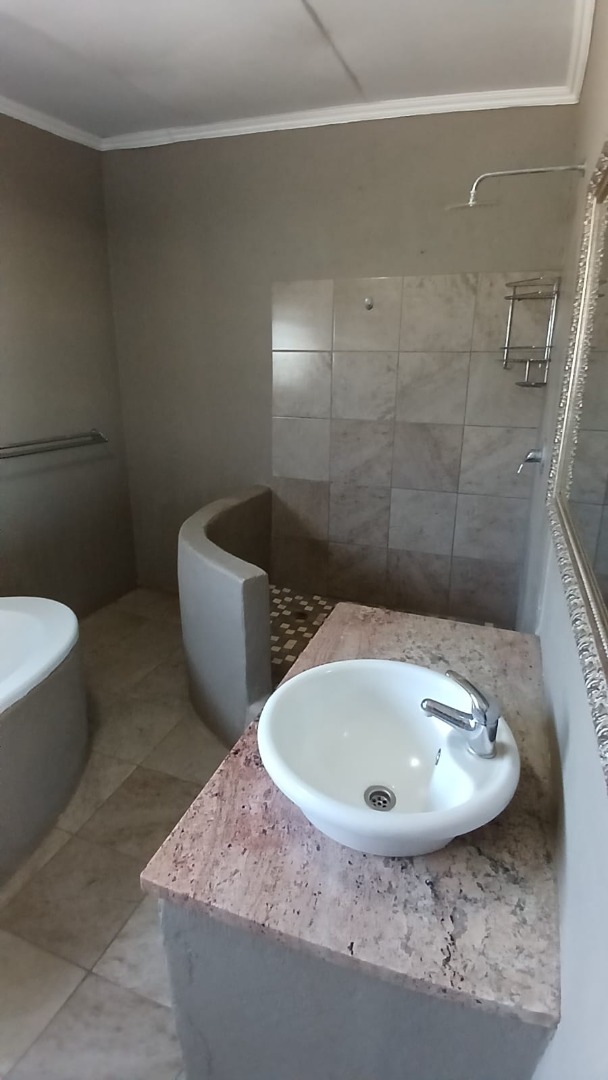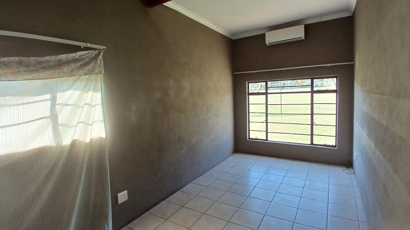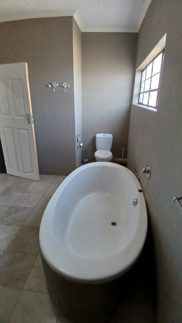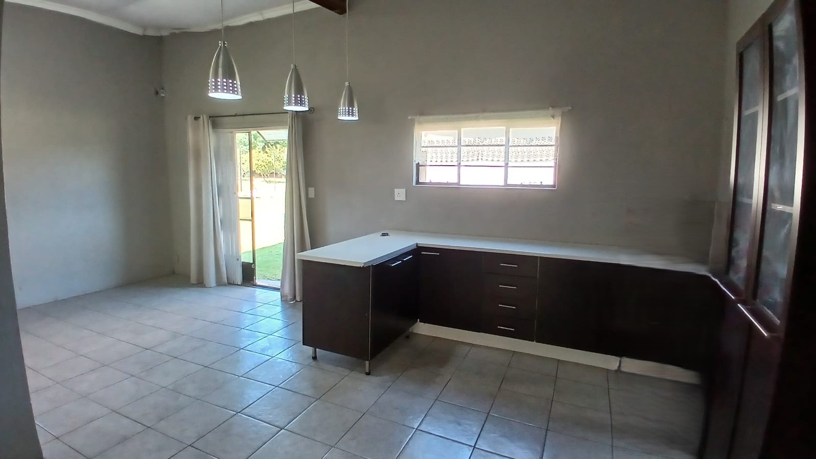 Security is well-addressed with an alarm system, access gate, and electric fencing around the perimeter, complemented by security bars on windows for added peace of mind. This rental also prioritizes self-sufficiency with a borehole and a large water storage tank, ensuring a reliable water supply. A separate storage shed or Wendy house provides additional utility space, catering to various needs.